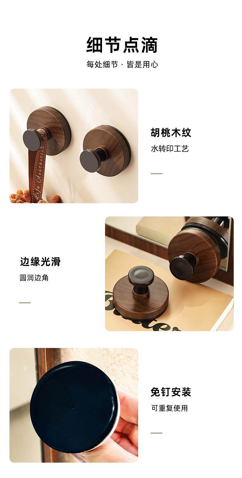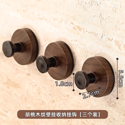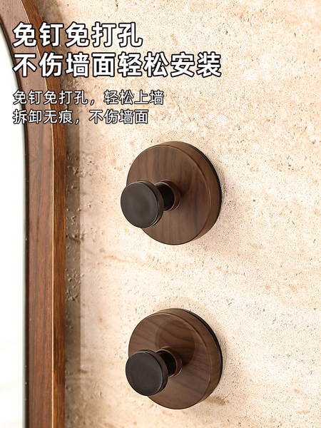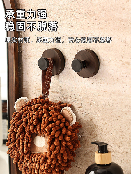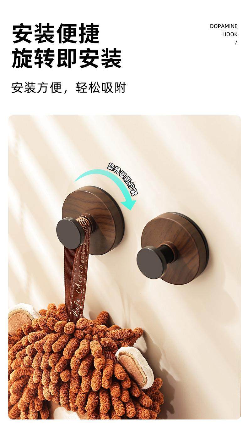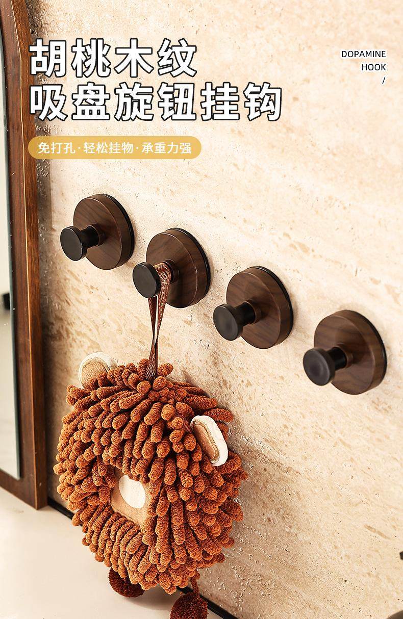胡桃木纹吸盘旋钮挂钩门后浴室厨房壁挂式置物架免打孔挂衣钩挂架