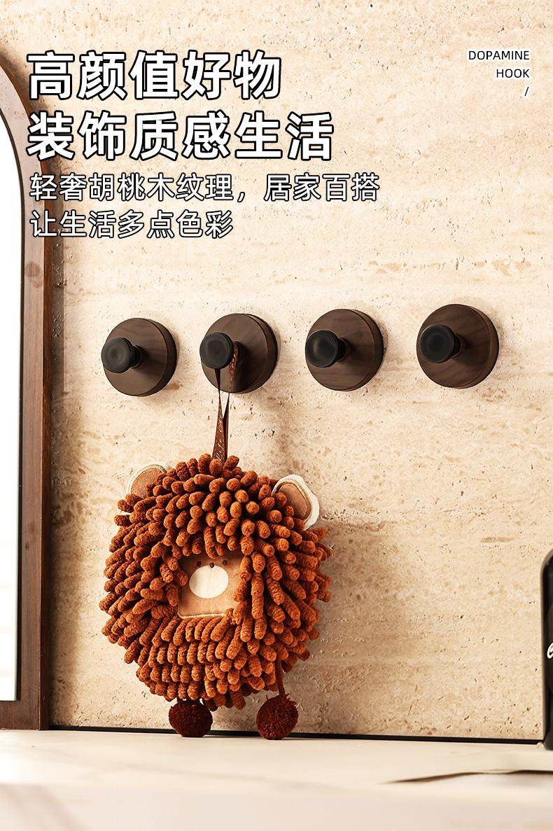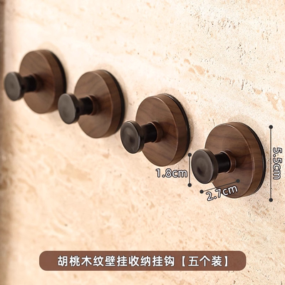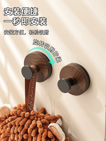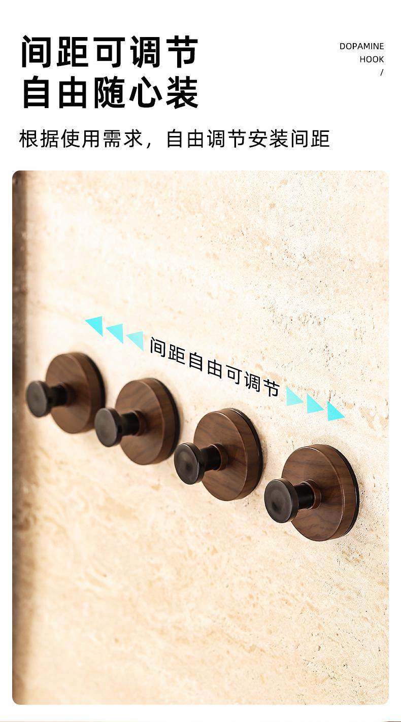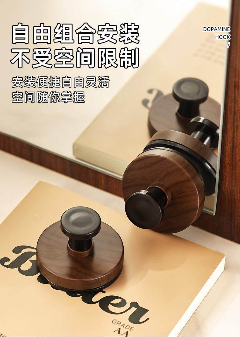 胡桃木纹吸盘旋钮挂钩门后浴室厨房壁挂式置物架免打孔挂衣钩挂架