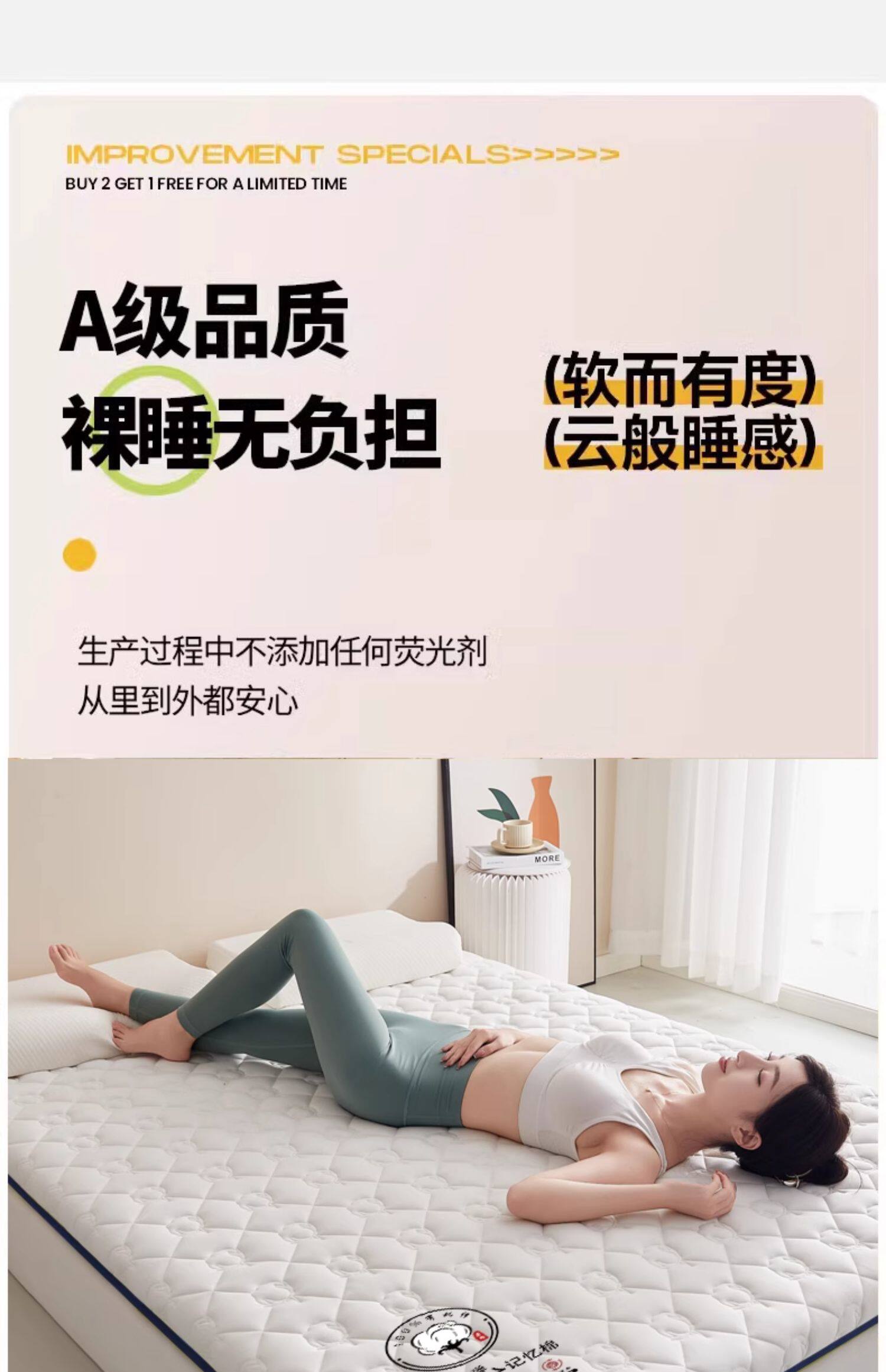 升级抗菌-香槟橙-厚约3.5cm【A类新疆棉花填充 护脊抗菌】
