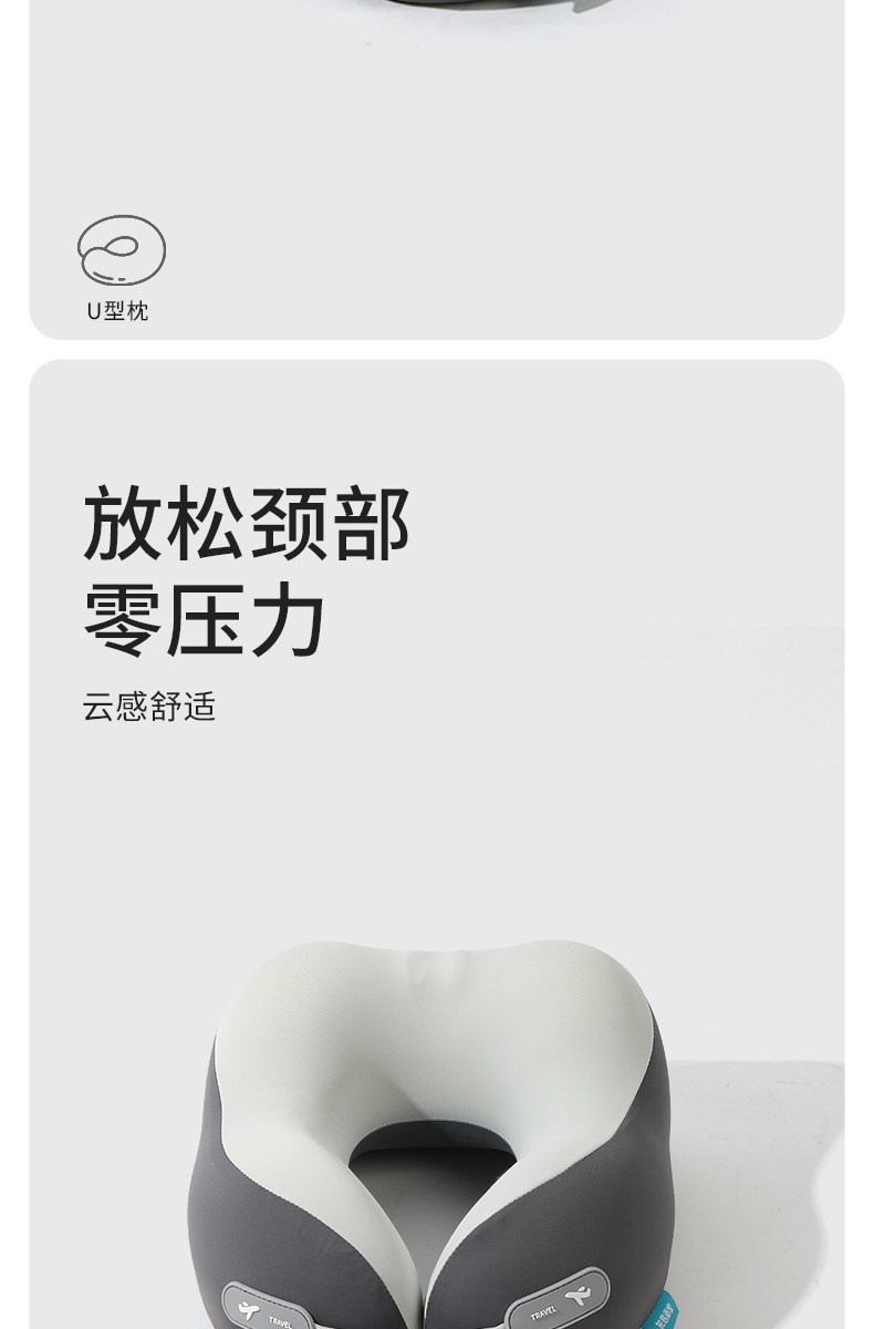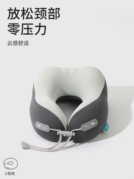 深灰记忆棉U型枕-成人款+圆盒收纳