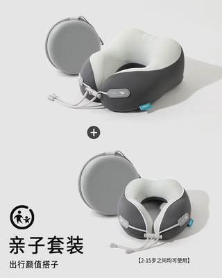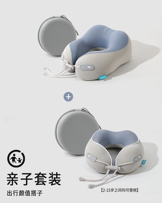浅灰记忆棉U型枕-儿童款+圆盒收纳