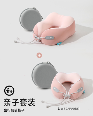 粉色记忆棉U型枕-儿童款+圆盒收纳
