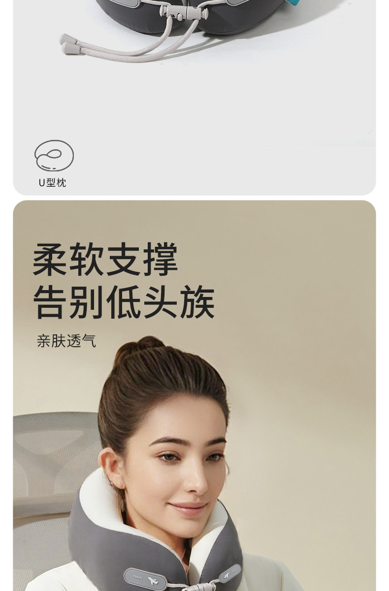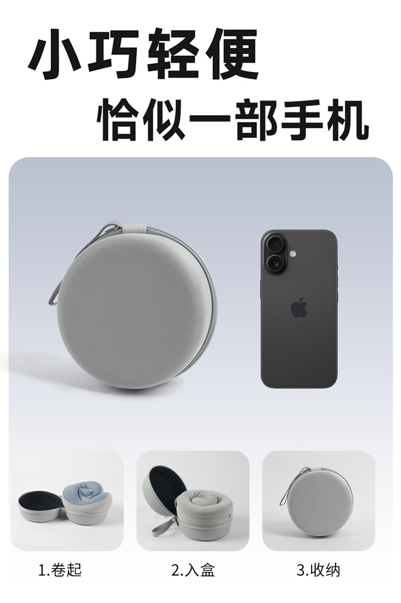 浅灰记忆棉U型枕-成人款+圆盒收纳