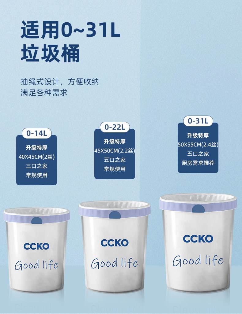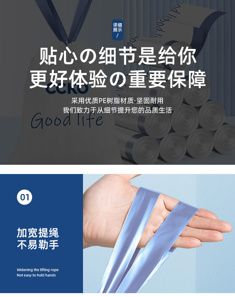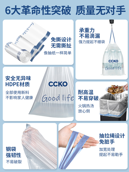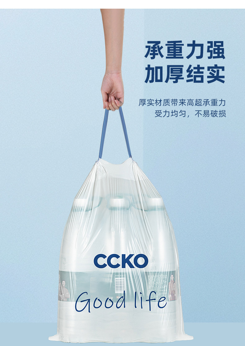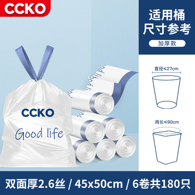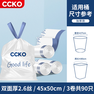 CCKO垃圾袋家用加厚手提式大号2026热卖厨房办公室免撕抽绳塑料袋