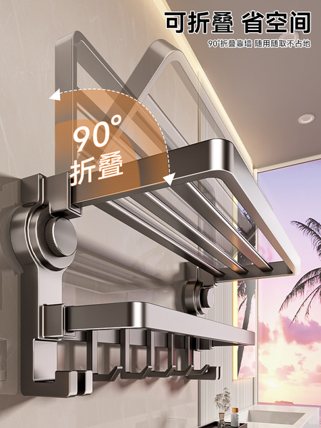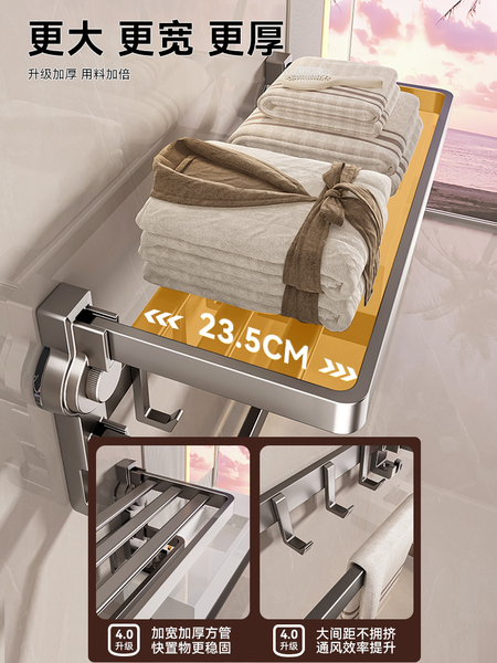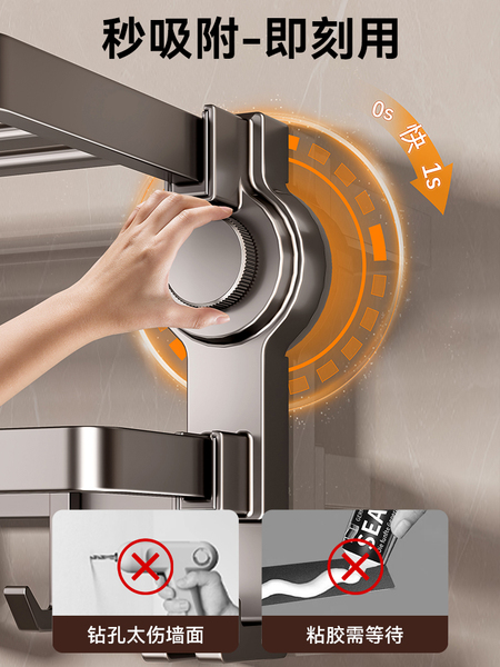 吸盘式毛巾架子免打孔卫生间挂杆置物架浴室厕所浴巾架收纳洗手间
