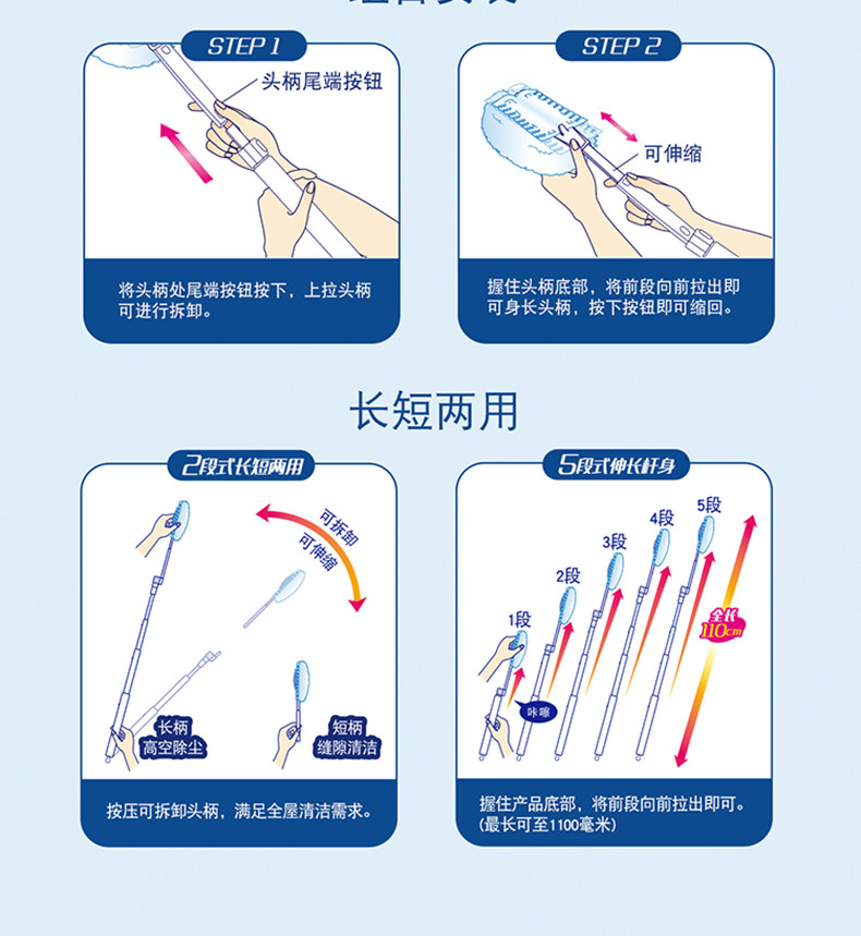 【长柄 体验装】1长柄 +5片掸头(蓝色)