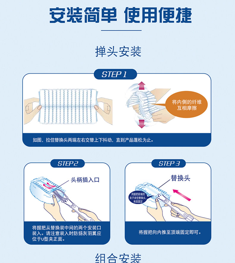 【长柄 实用装】1长柄+10片掸头(蓝色)