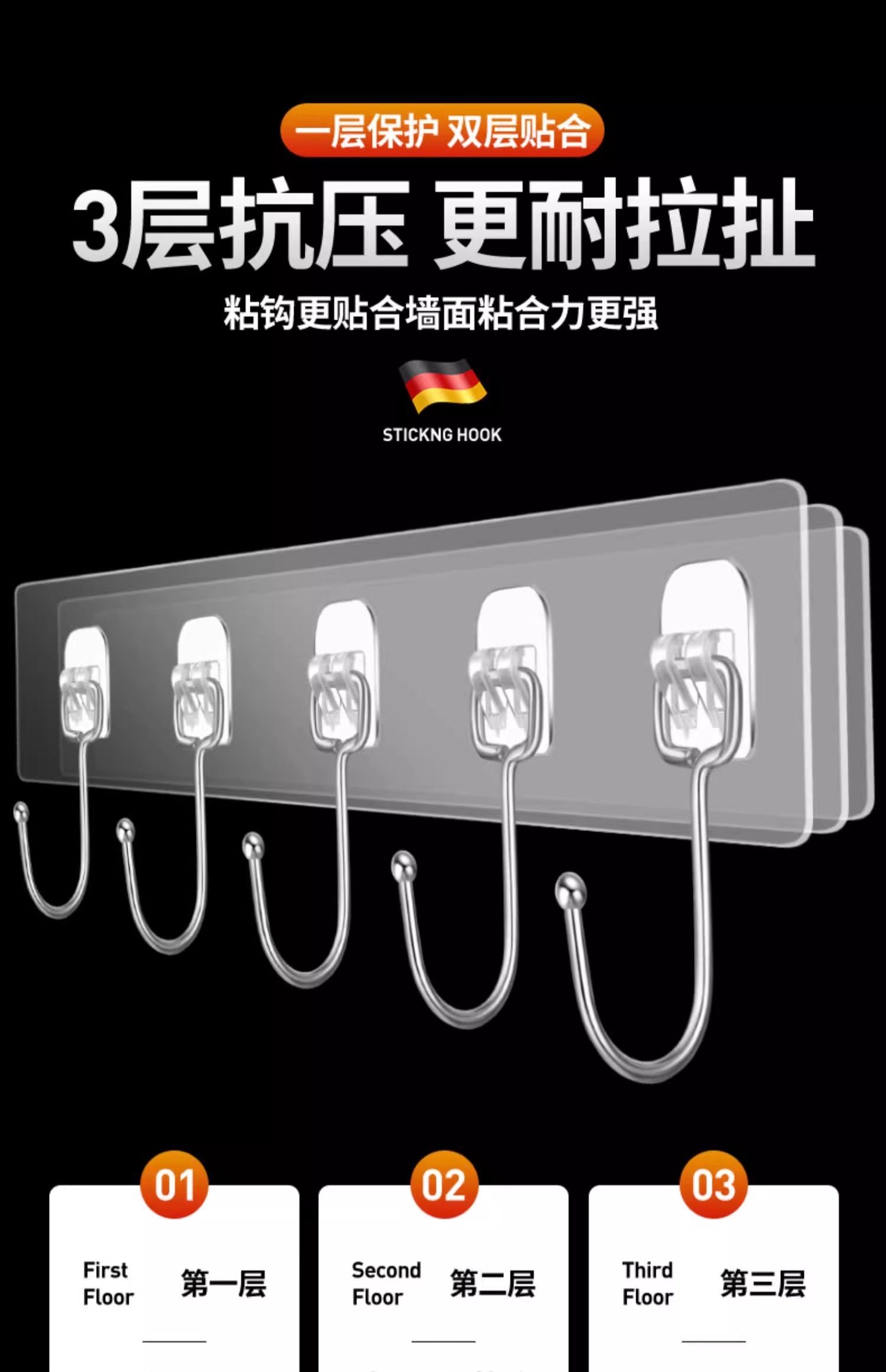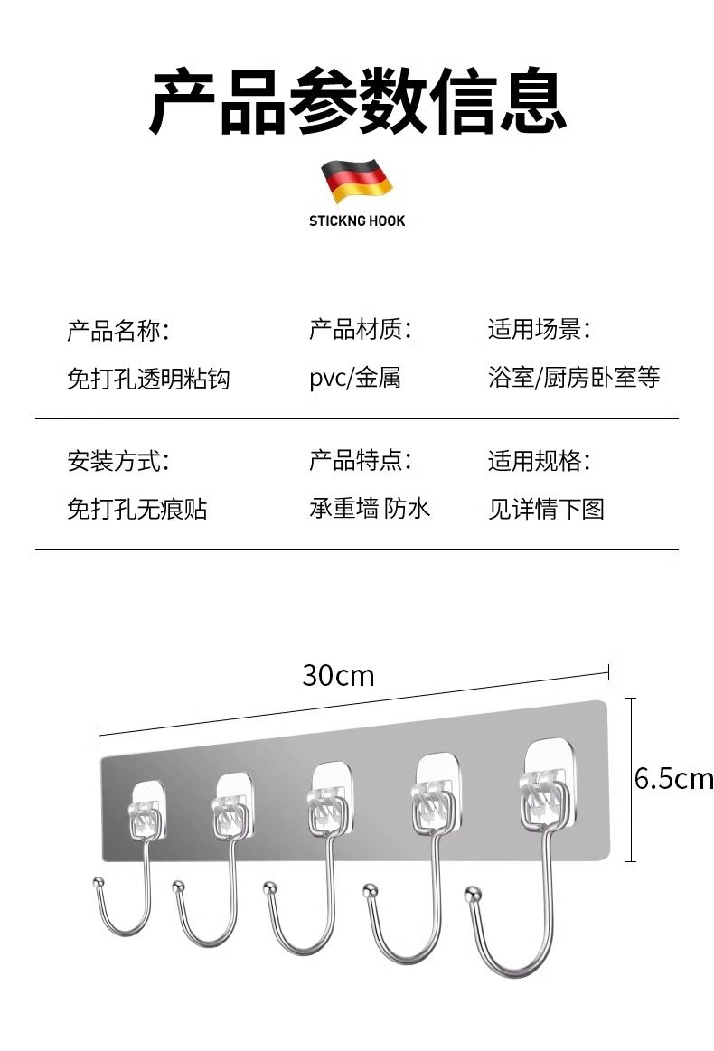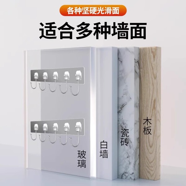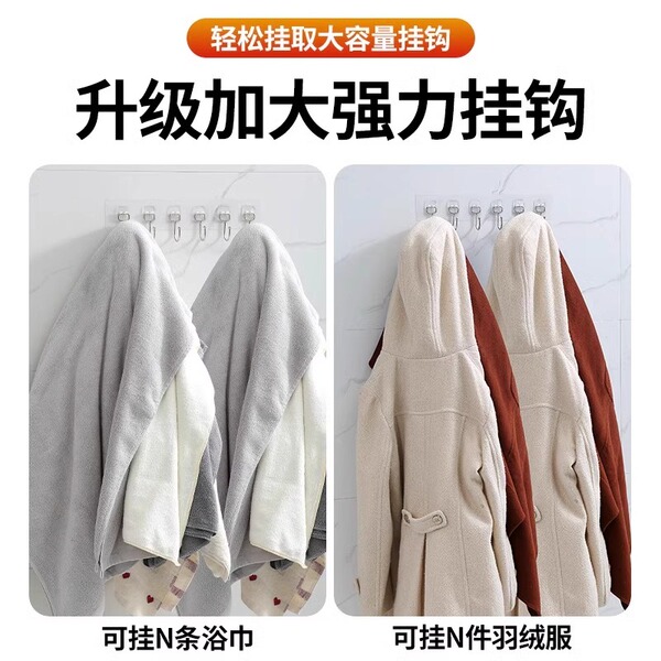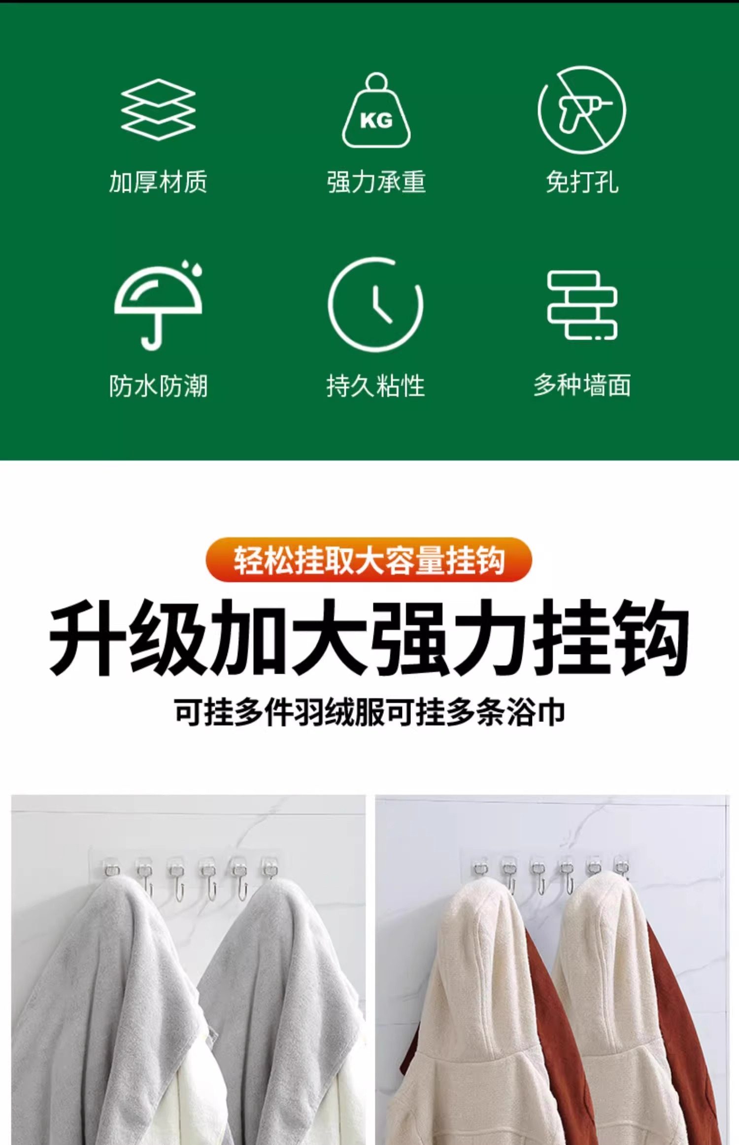 挂钩免打孔厨房墙壁门后挂衣架衣服粘钩强力粘胶浴室连排无痕衣钩