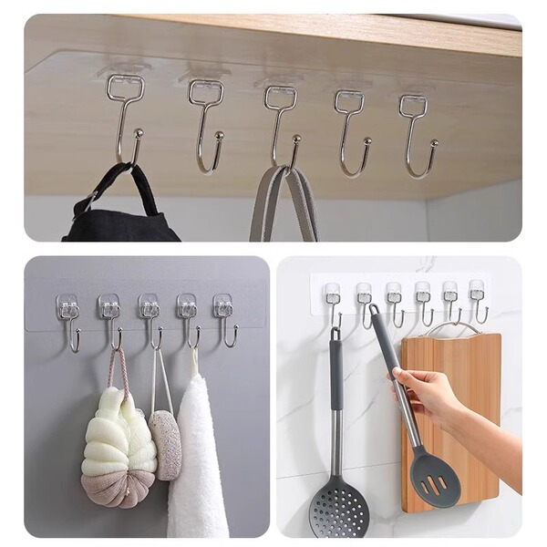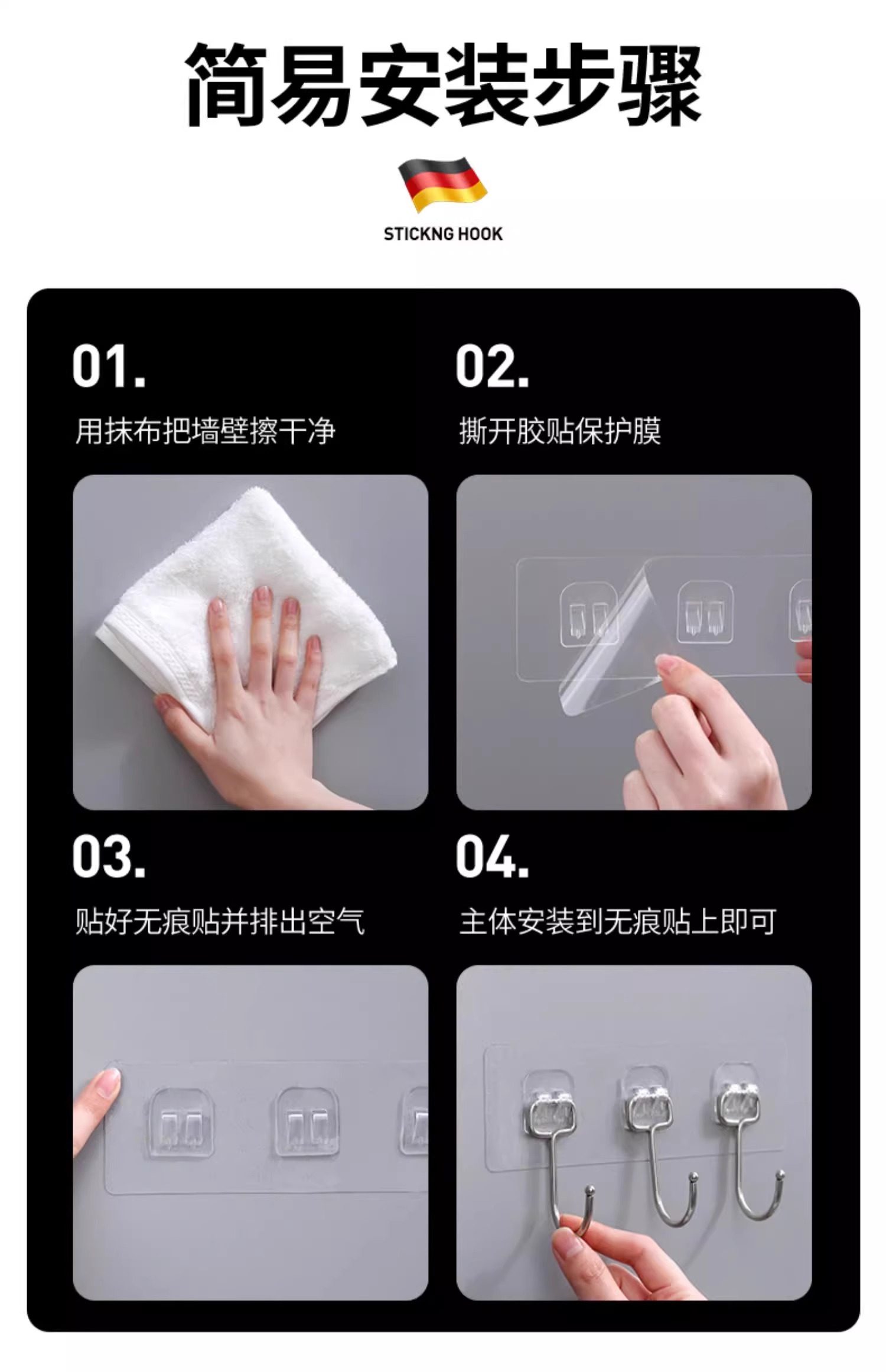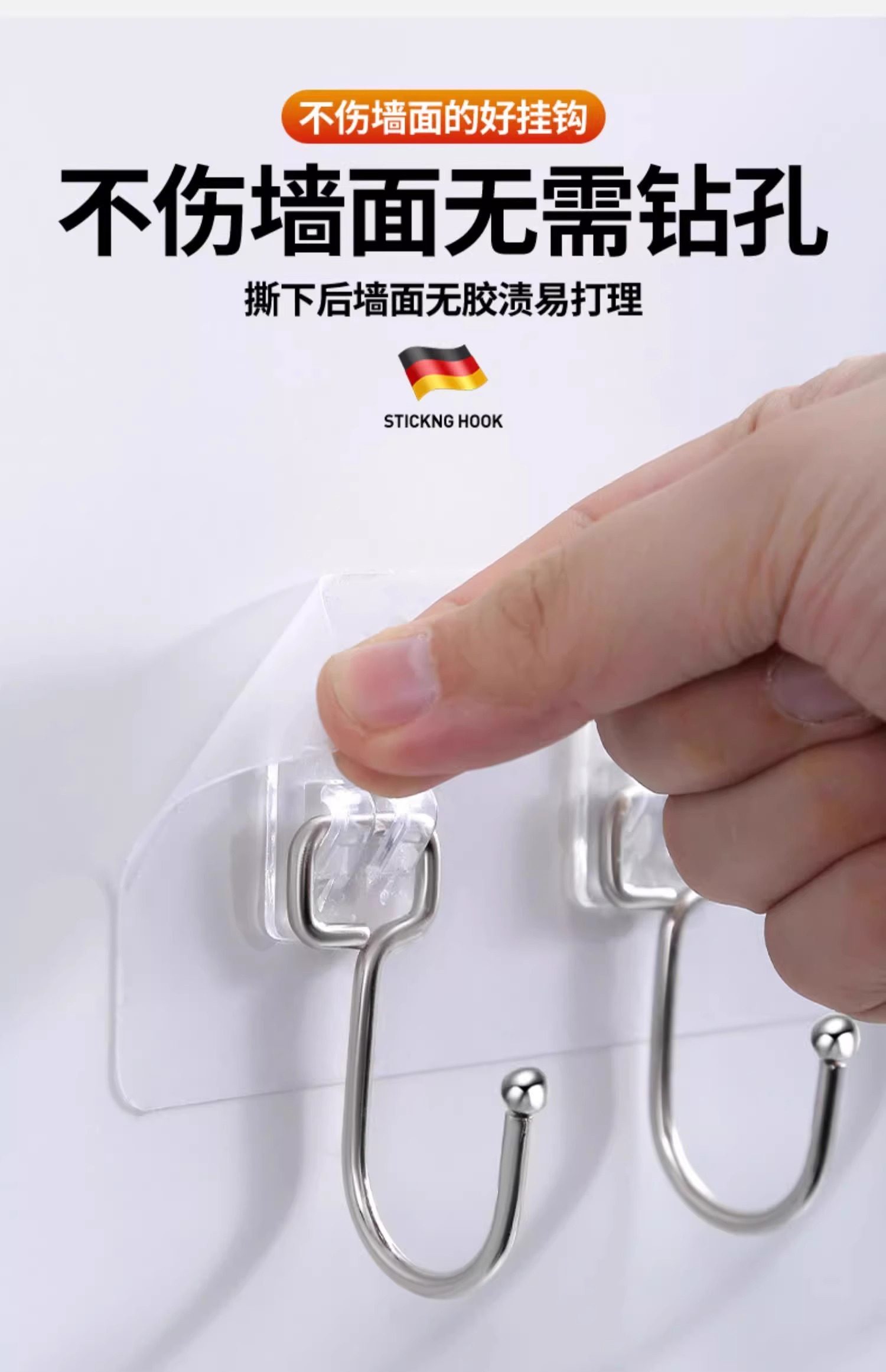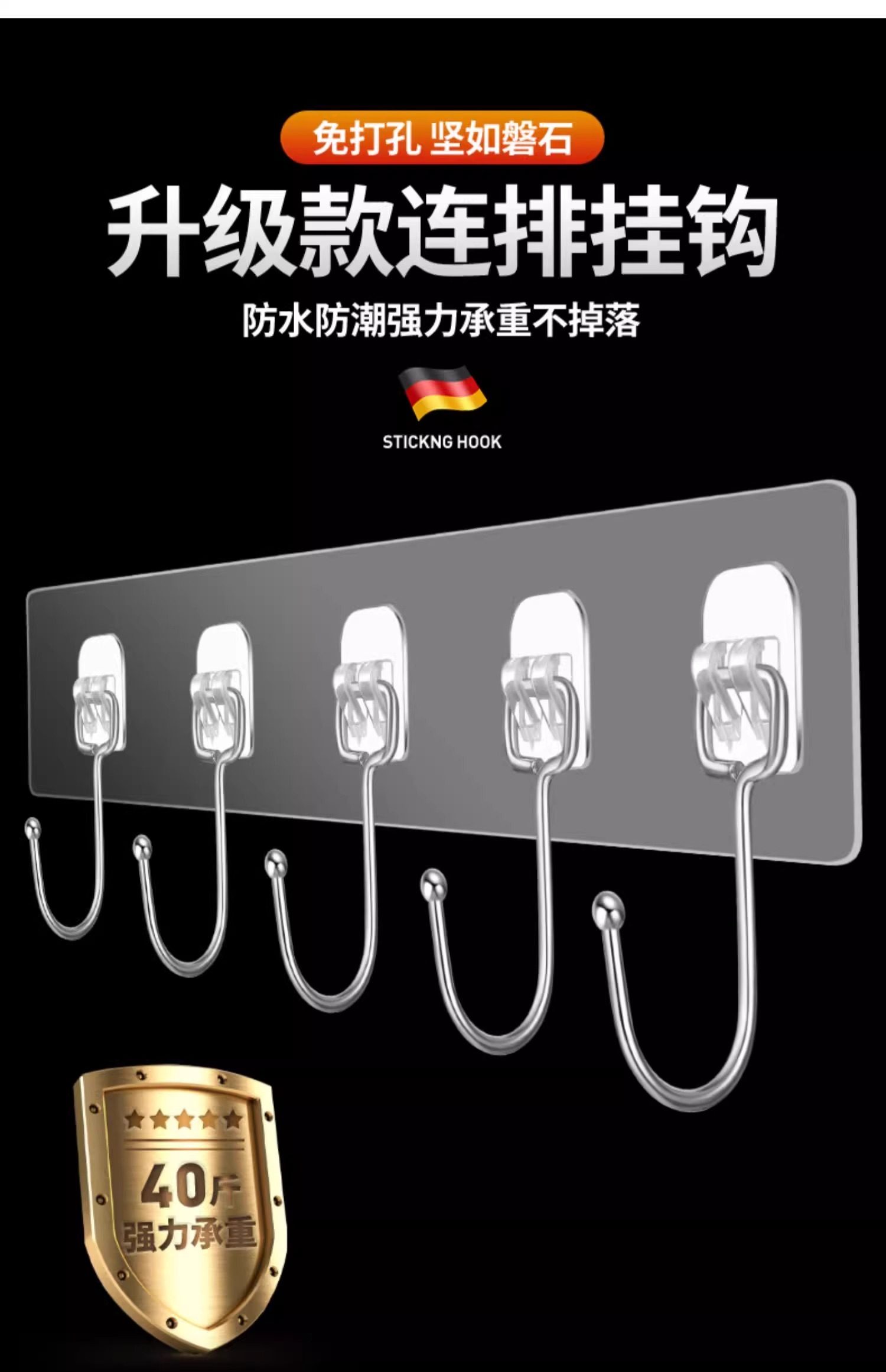 挂钩免打孔厨房墙壁门后挂衣架衣服粘钩强力粘胶浴室连排无痕衣钩