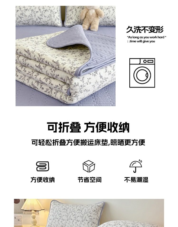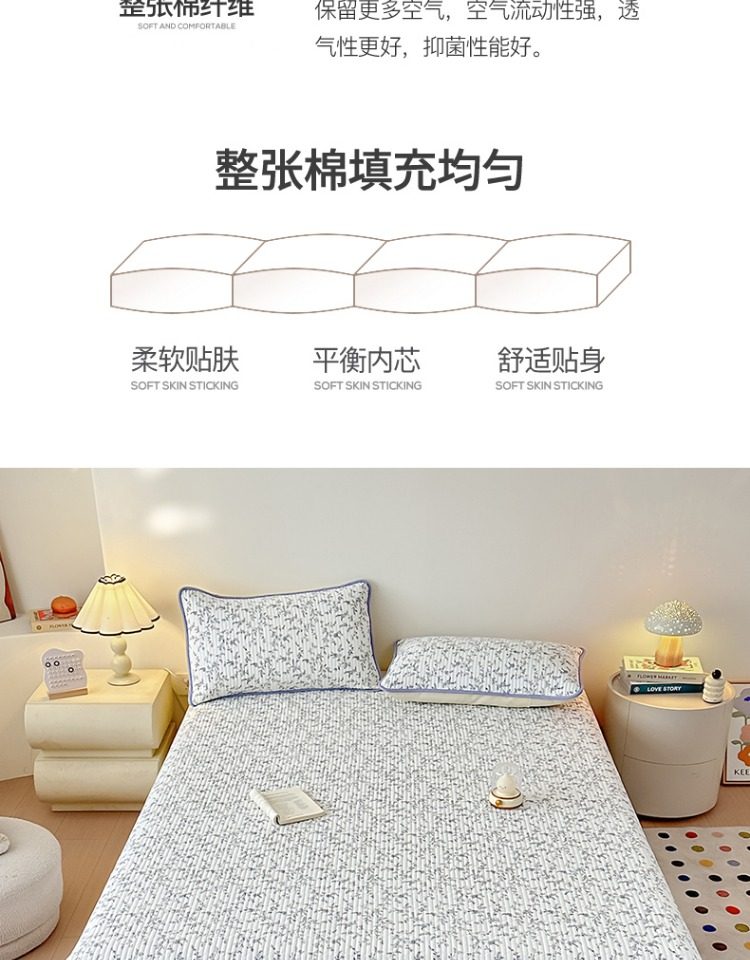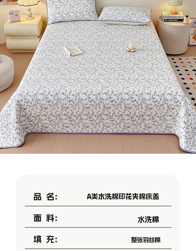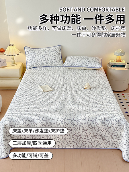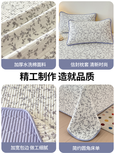 水洗棉床盖单件a类母婴级四季通用榻榻米防滑夹棉厚床单人三件套3
