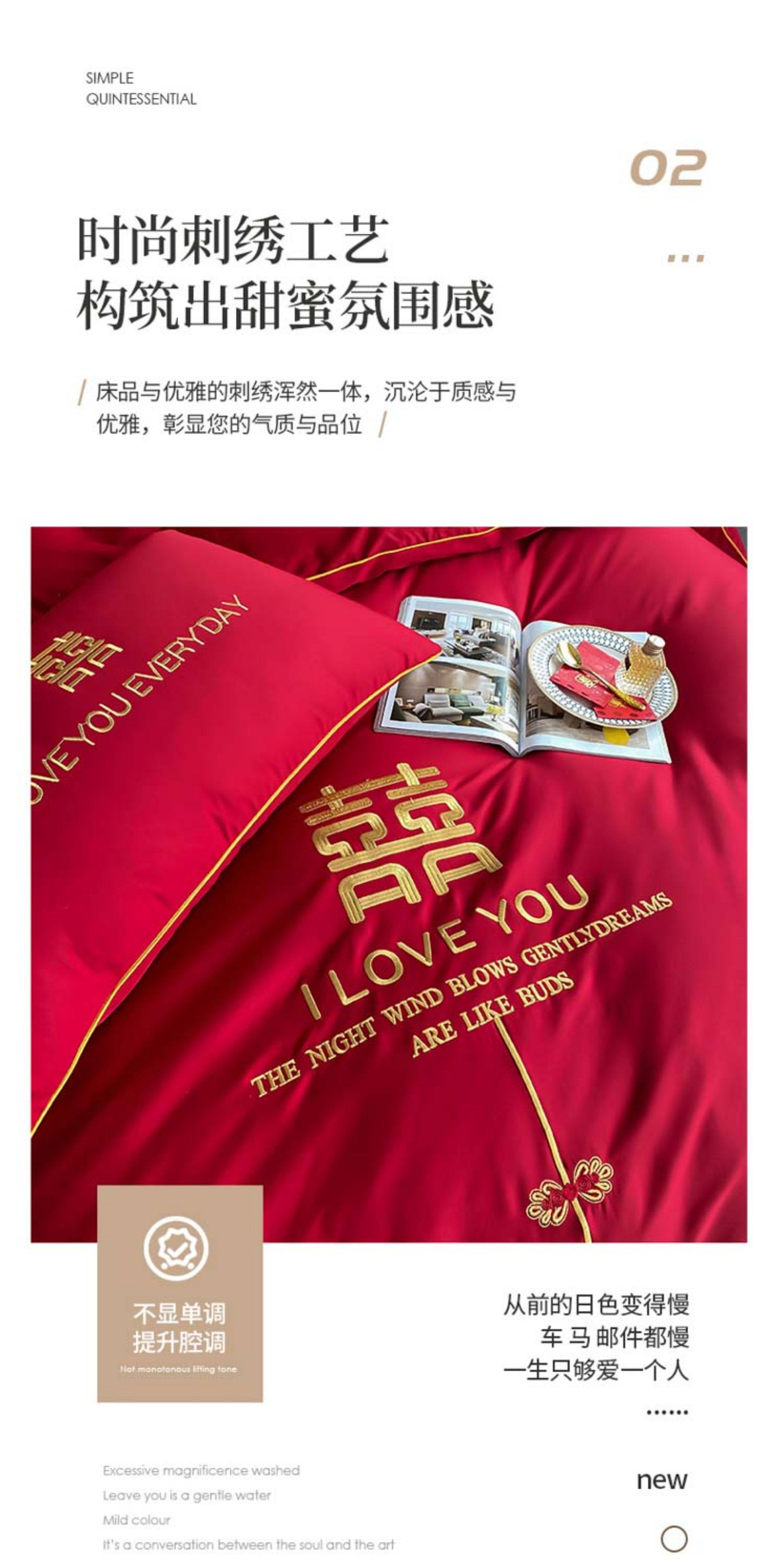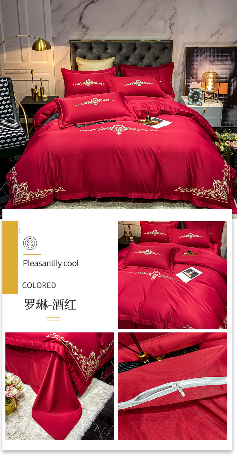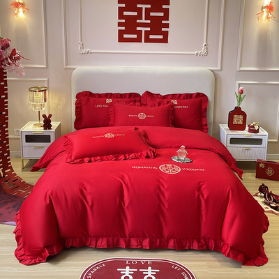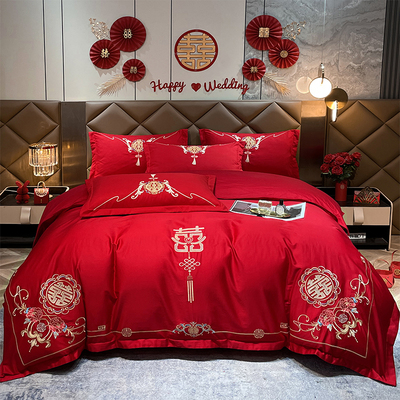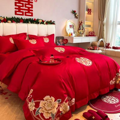 高档婚庆四件套大红喜被套刺绣龙凤新结婚房嫁礼床笠单床上用品4
