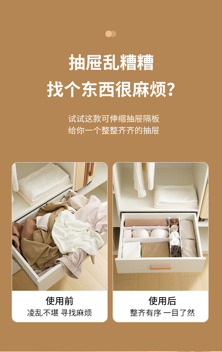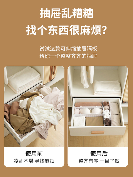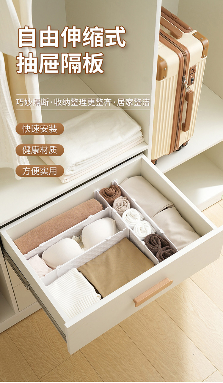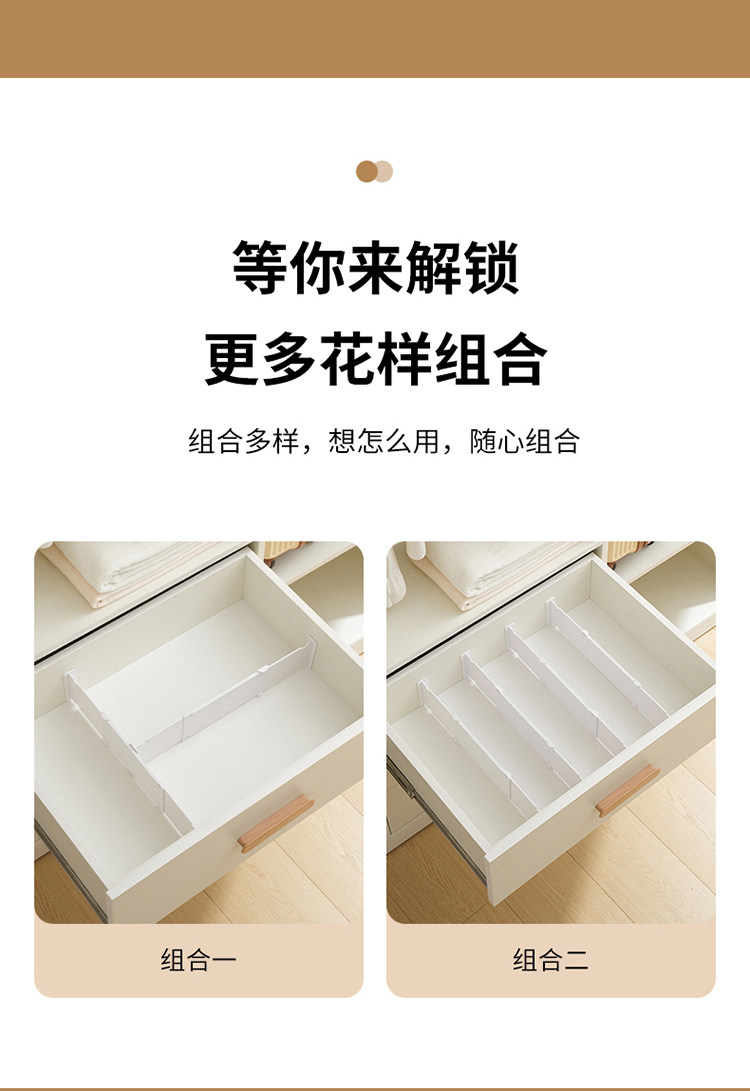 抽屉收纳分隔板塑料分割板神器内衣袜子整理隔断自由组合伸缩隔板