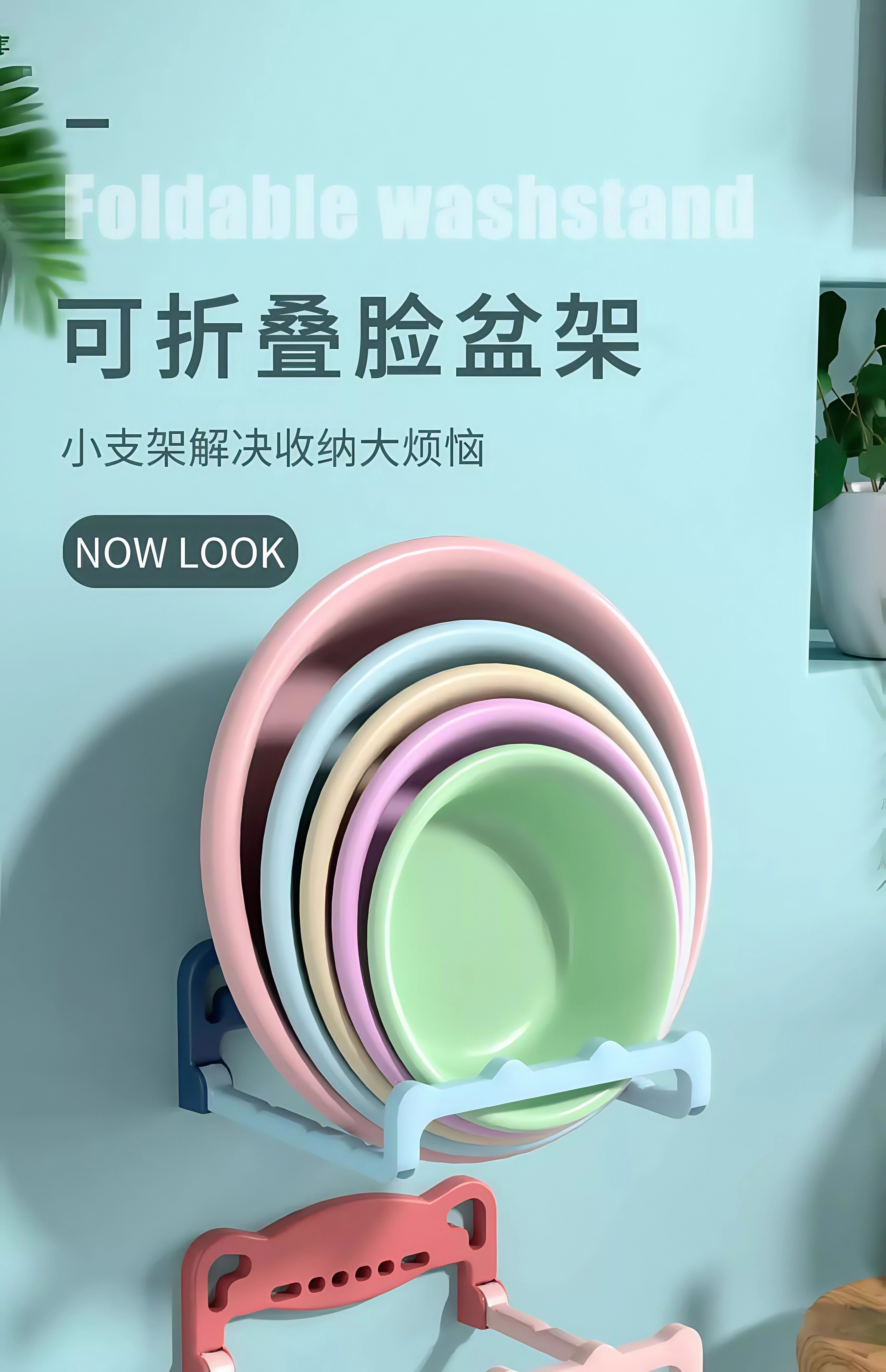 可折叠壁挂脸盆架卫生间免打孔置物架浴室厕所洗澡脚盆收纳沥水架