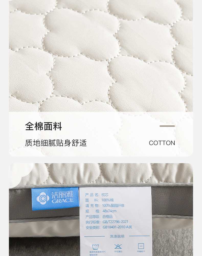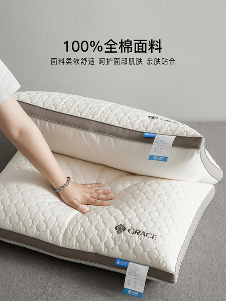 洁丽雅A类全棉抗菌枕头护颈椎助睡眠酒店枕芯护颈成人枕头芯一对a