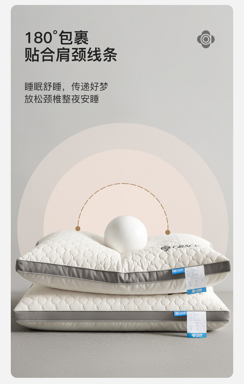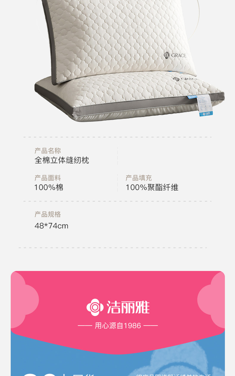 A类全棉立体枕高枕【一对装】 升级抗菌防螨
