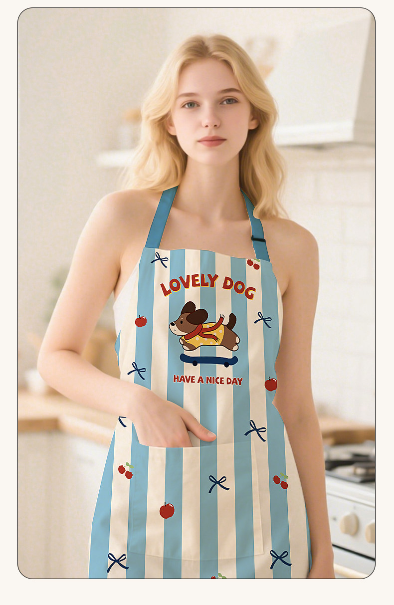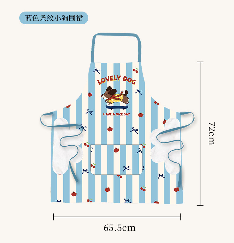 蓝色条纹狗围裙+PVC粉色手套L码 【1条围裙+1双PVC手套L码】