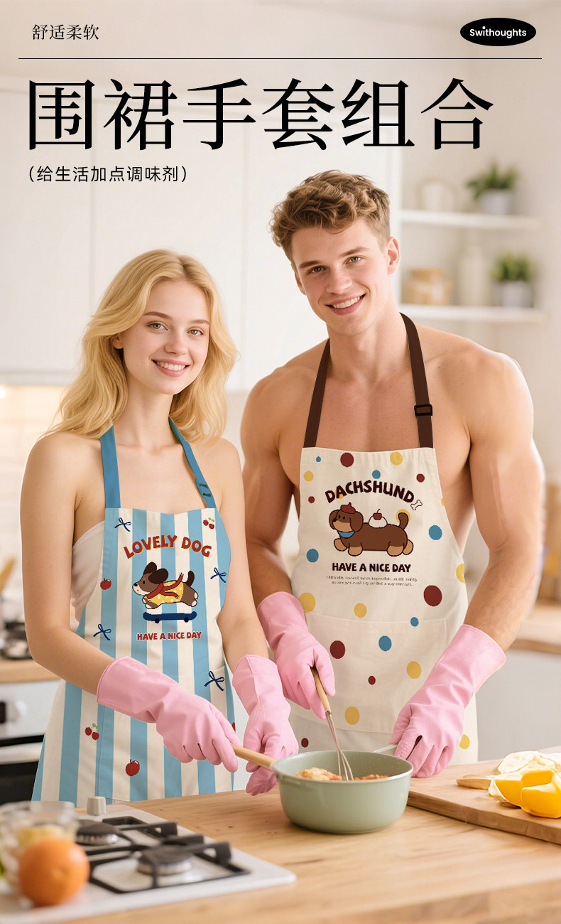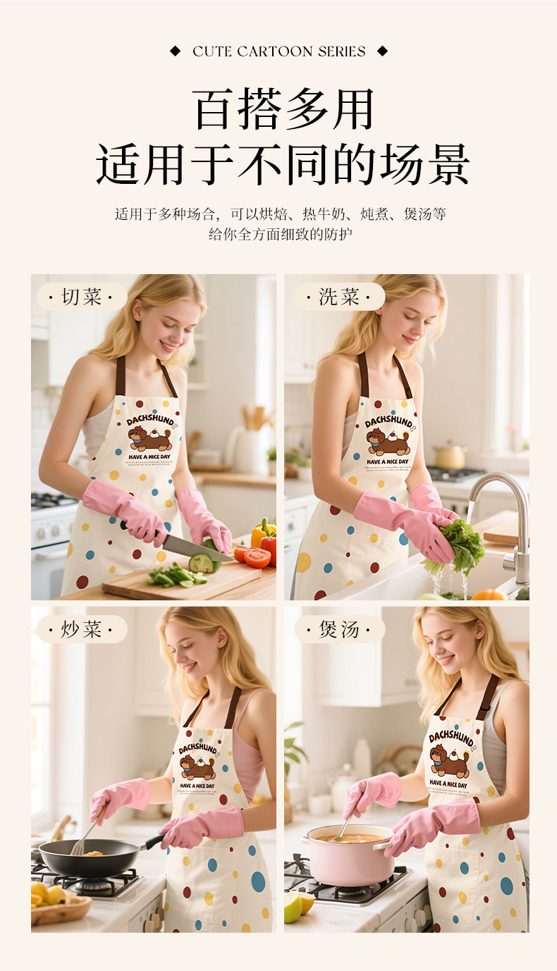 彩色波点狗围裙+PVC粉色手套L码 【1条围裙+1双PVC手套L码】