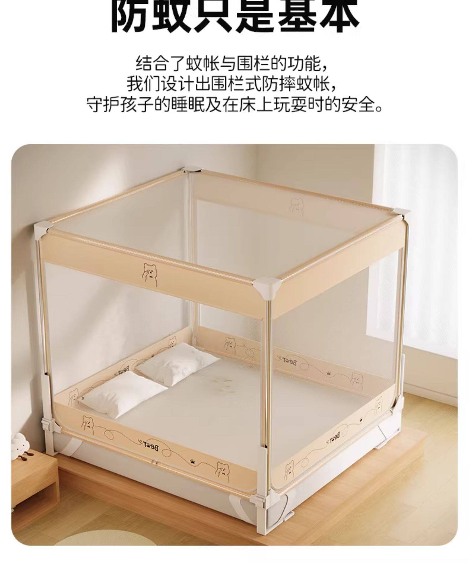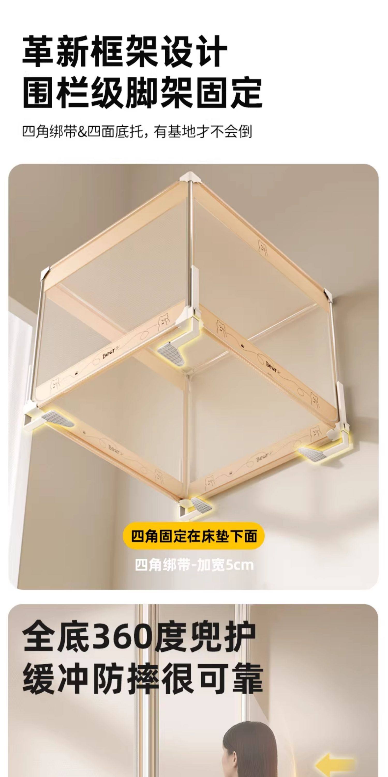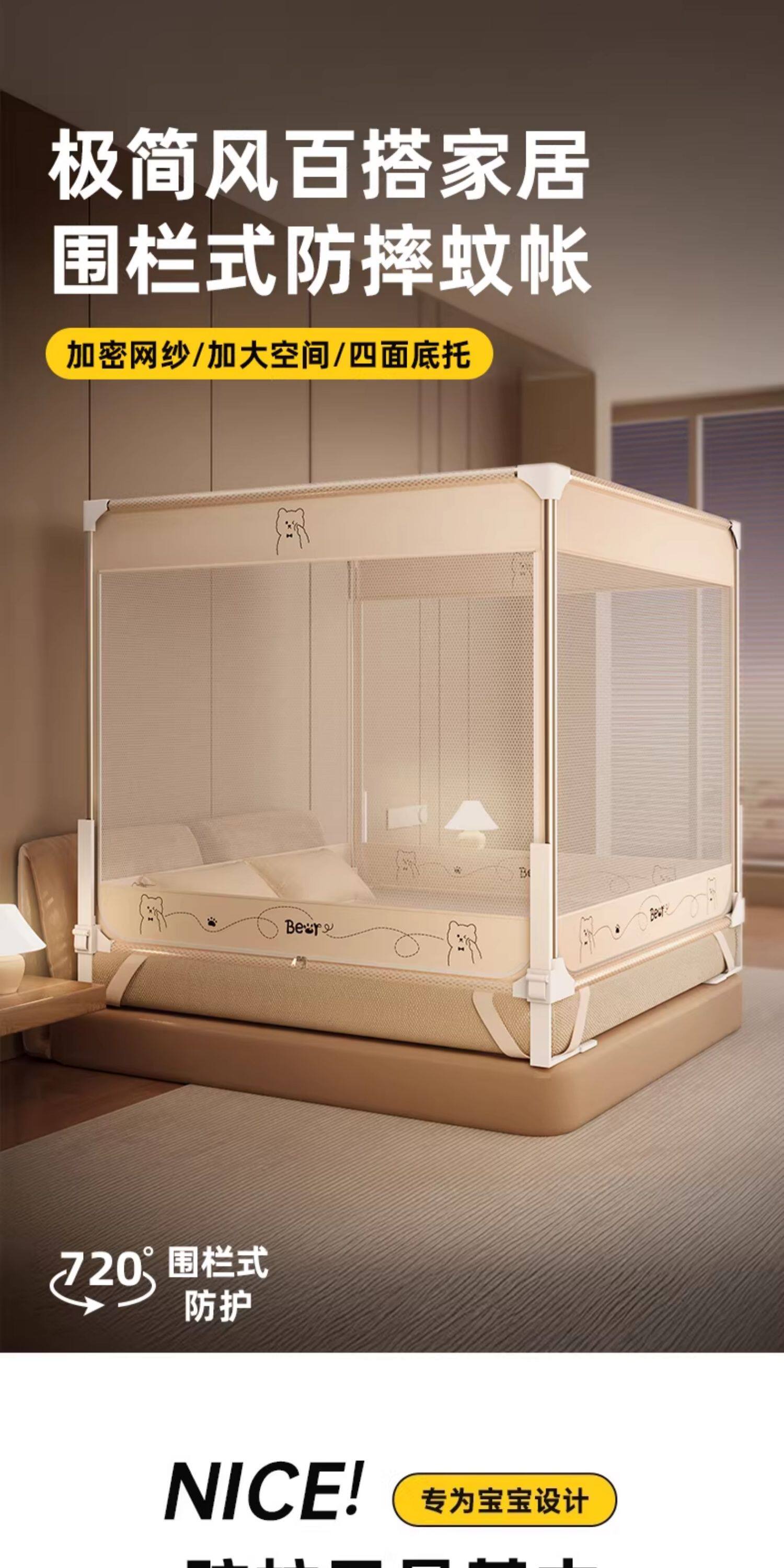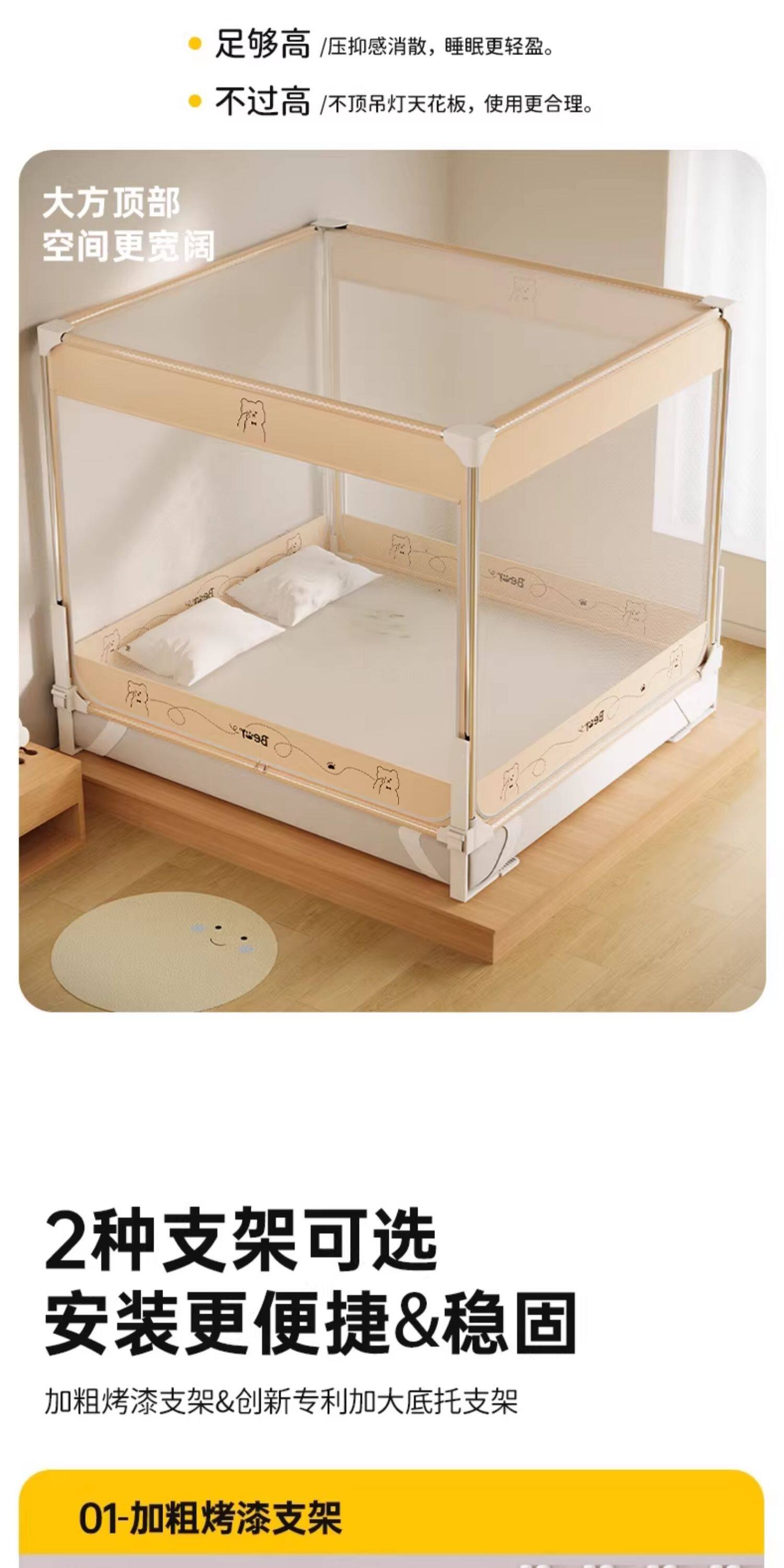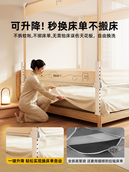 一棉缘升降防摔蚊帐床围栏二合一家用2026新款卧室儿童婴儿防掉床