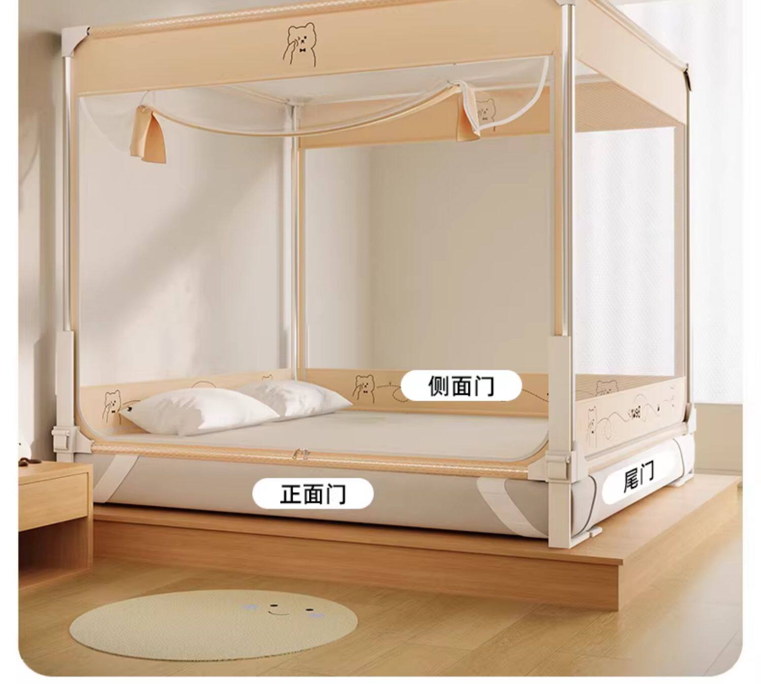 嘟嘟熊❤床笠+防尘顶【21MM脚托支架+吊床级帐纱】