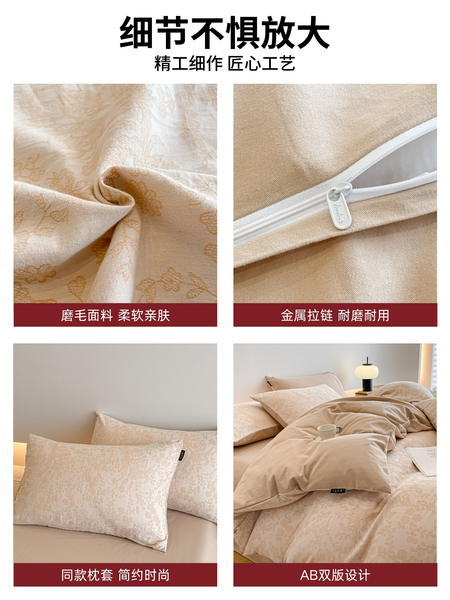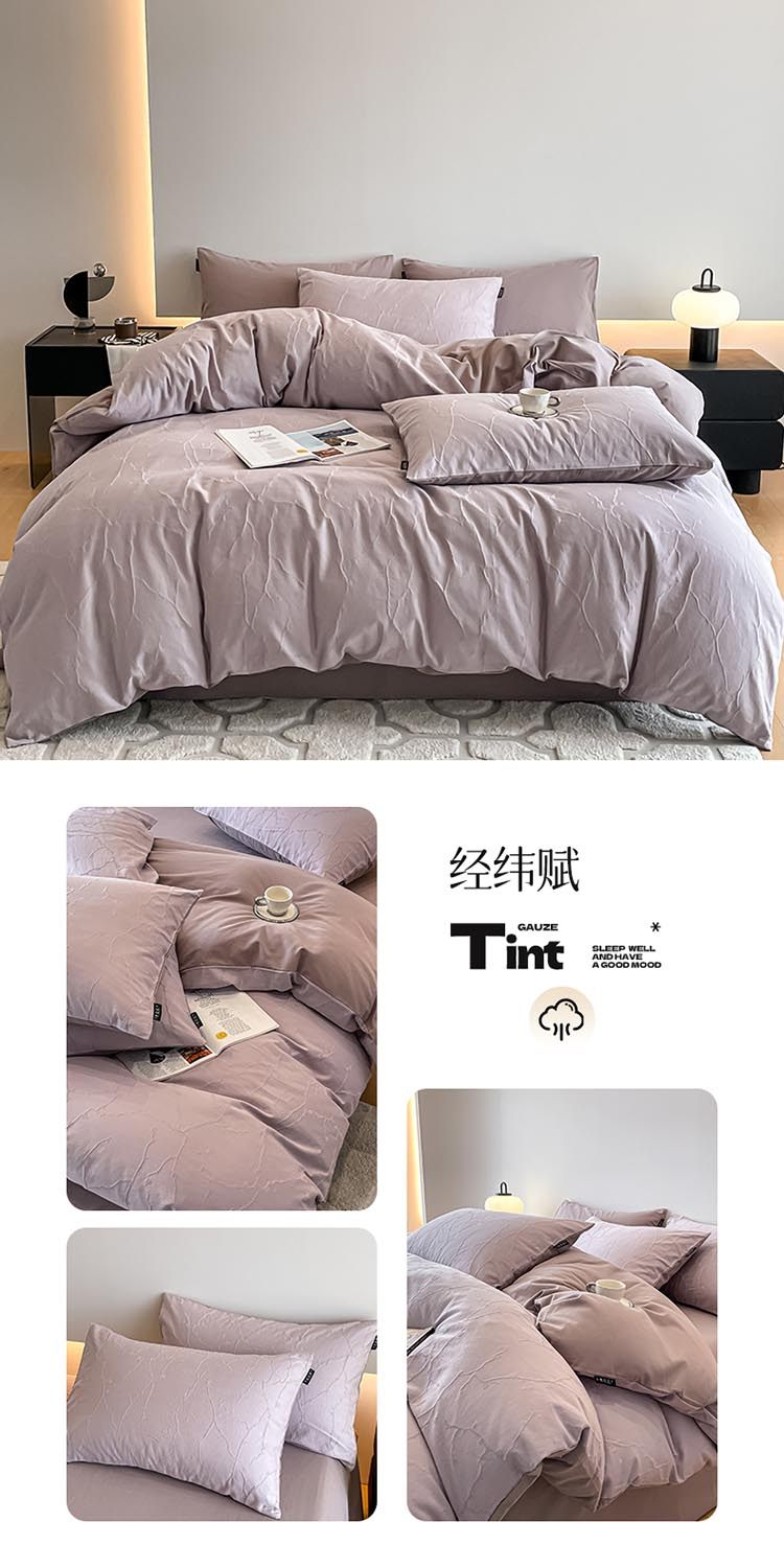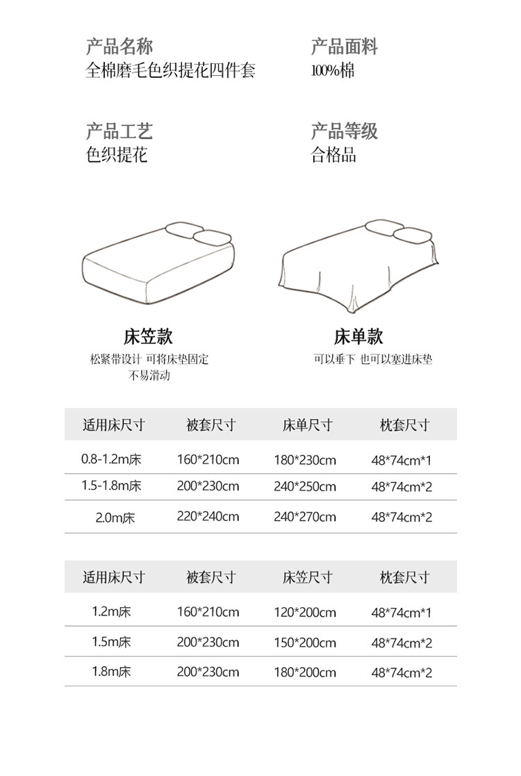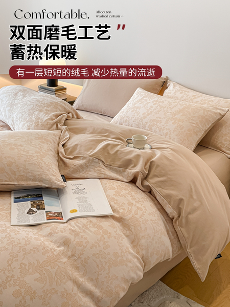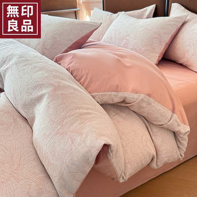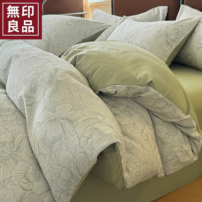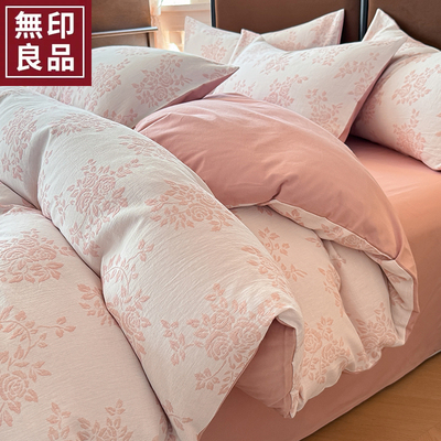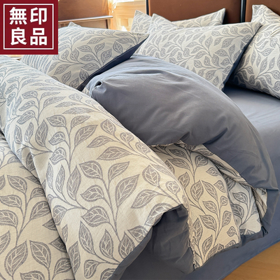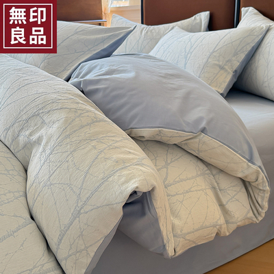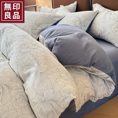 无印良品全棉色织提花磨毛床上四件套秋冬纯棉加厚床单被套三件套