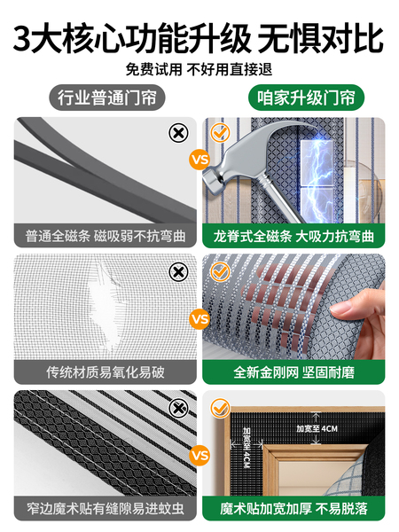 防蚊门帘全磁条金刚网强力磁性自吸纱门纱窗高档家用2026新款自粘