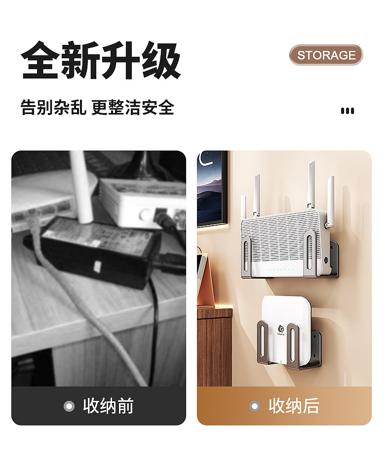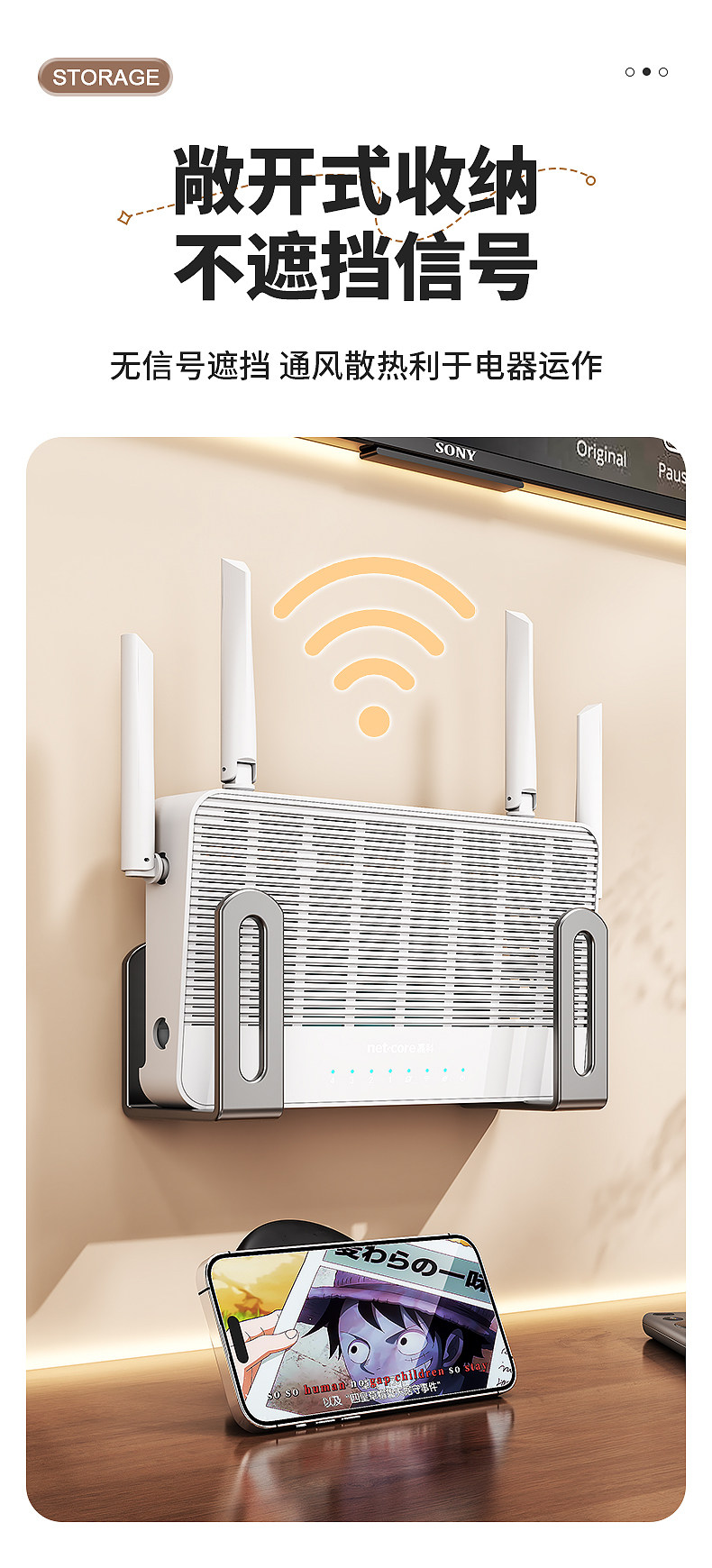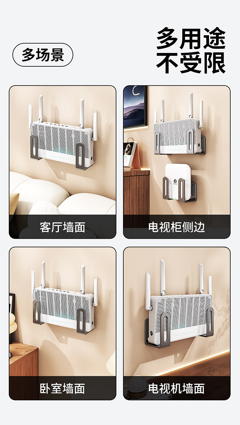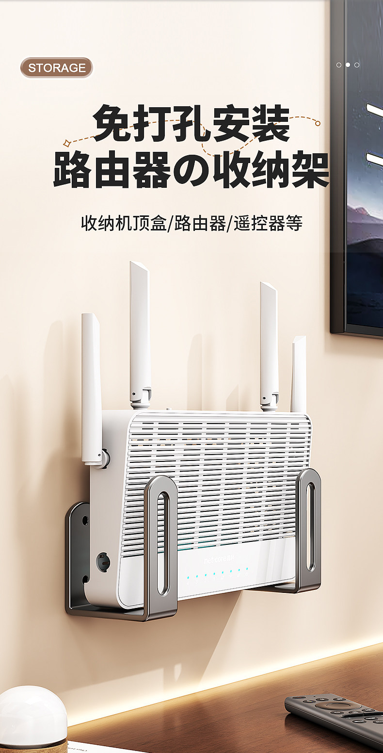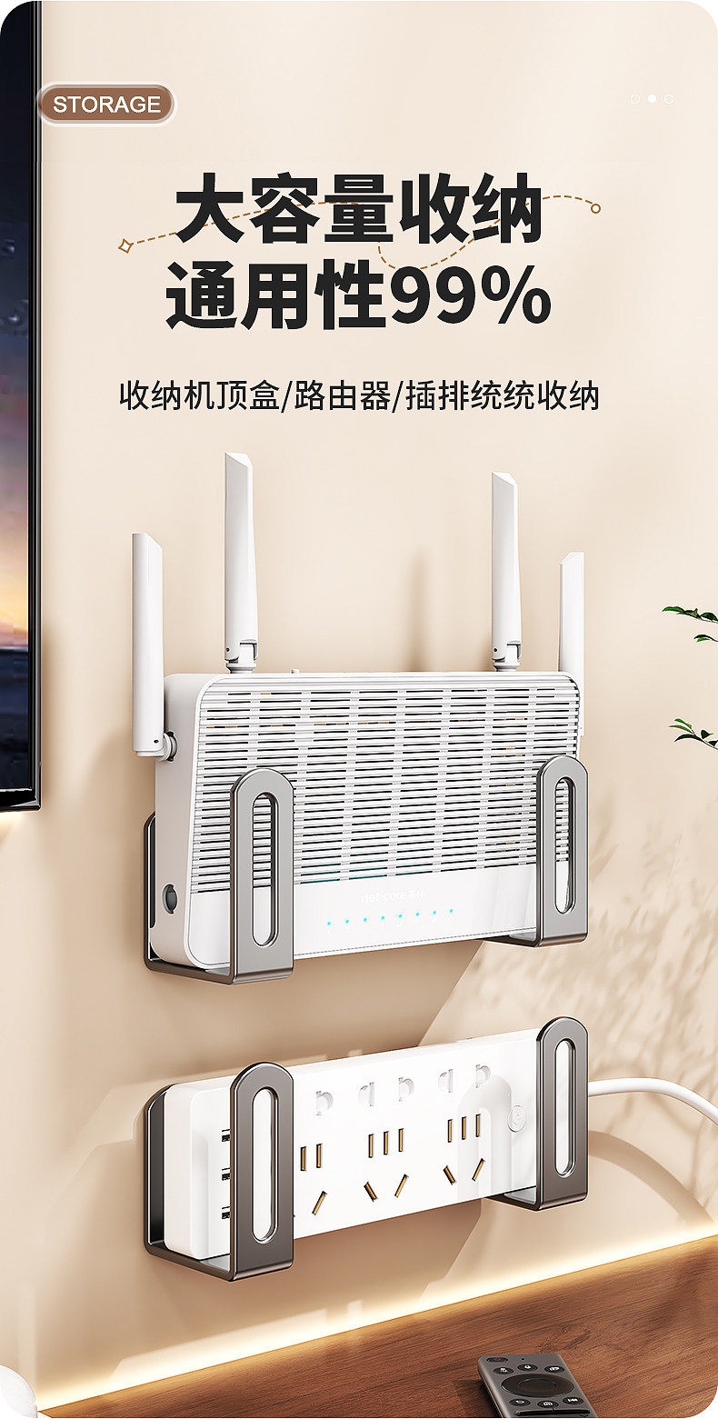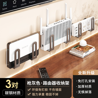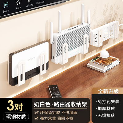 客厅免打孔墙上路由器收纳架机顶盒插排壁挂放置架壁挂置物固定器