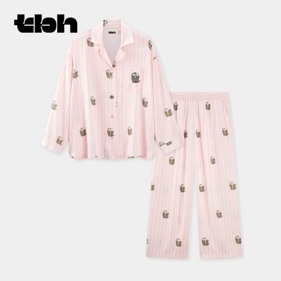 “都市野兽”海獭星光缎长款家居服套装 粉白条纹
