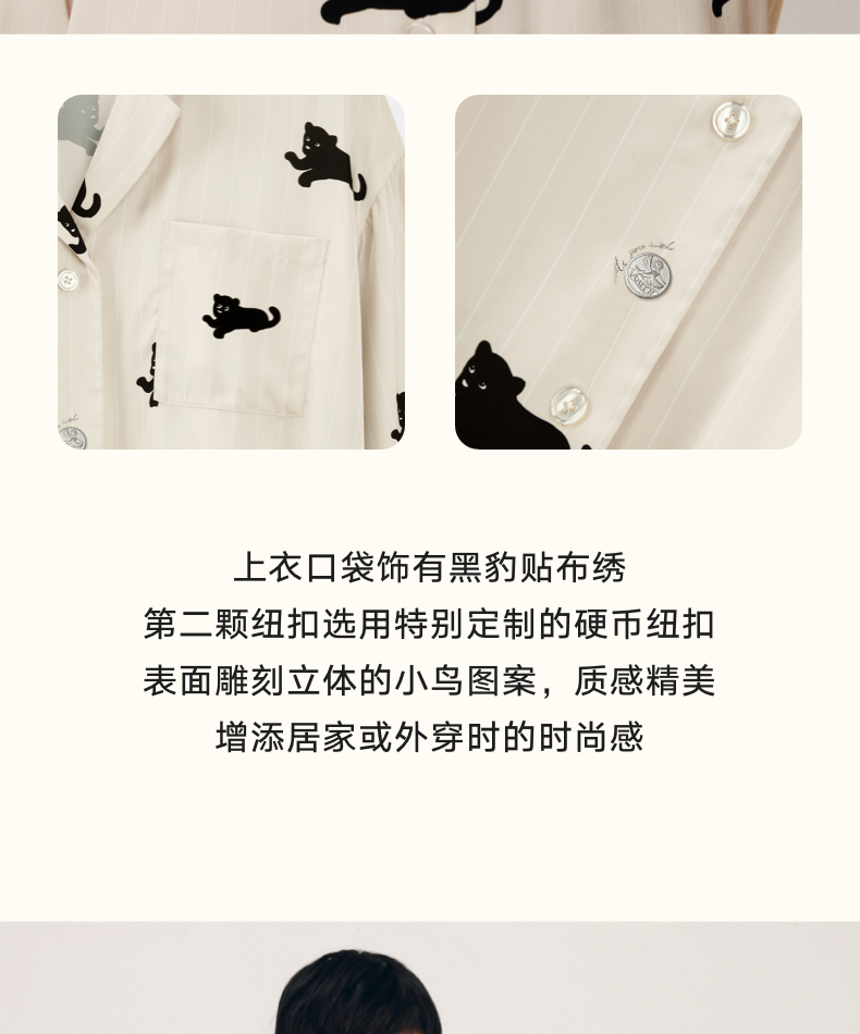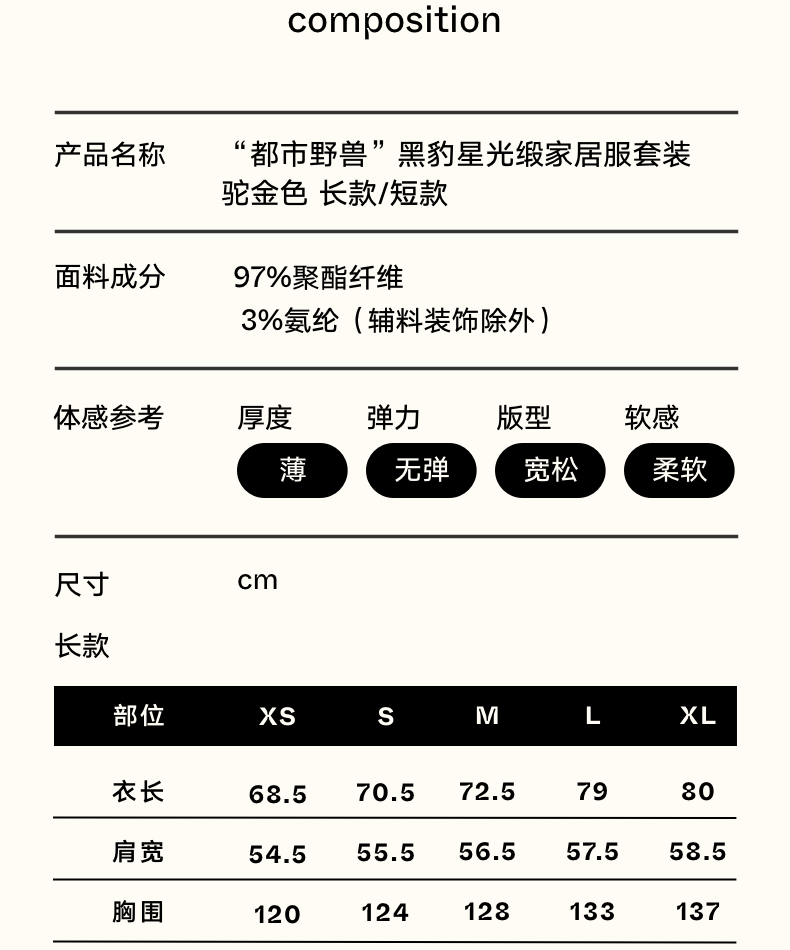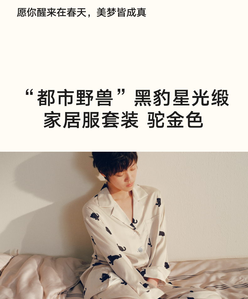 “都市野兽”黑豹星光缎长款家居服套装 驼金色