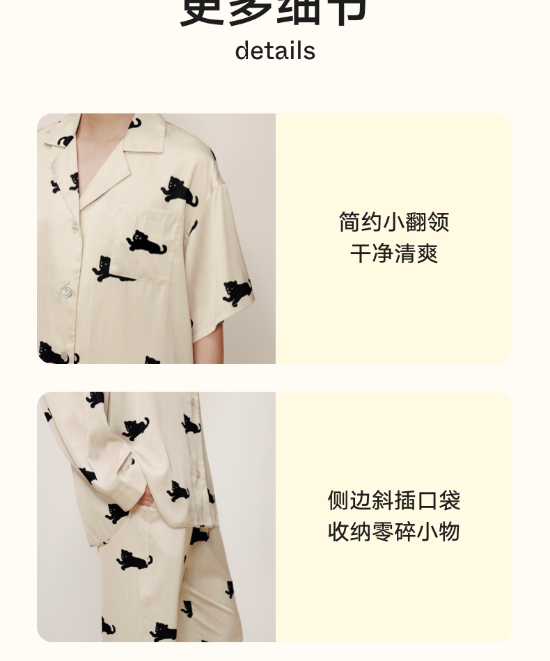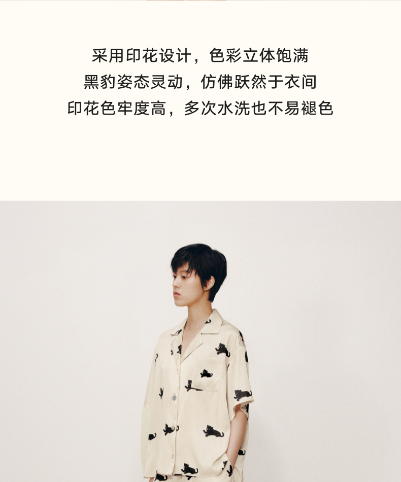 “都市野兽”黑豹星光缎短款家居服套装 驼金色