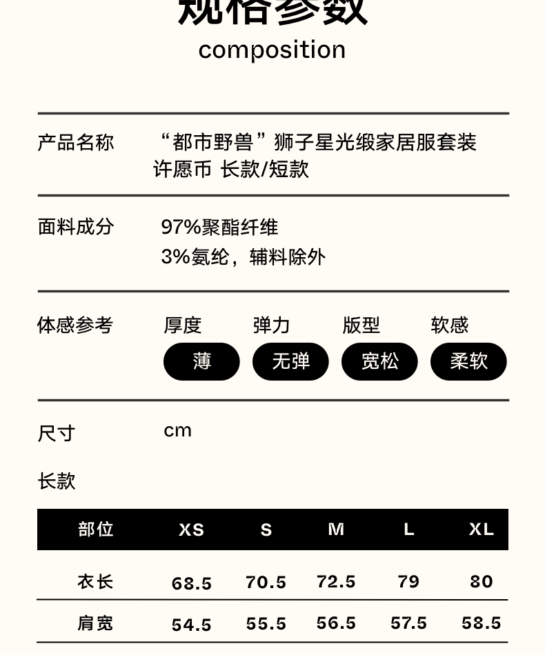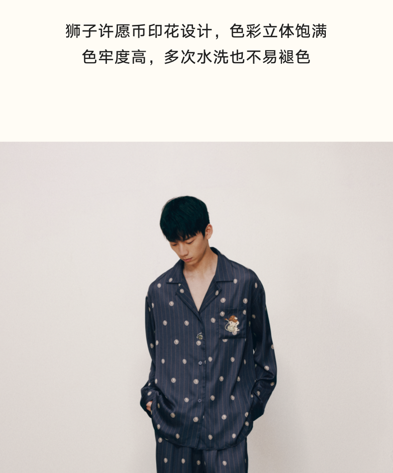 “都市野兽”狮子星光缎长款家居服套装 许愿币