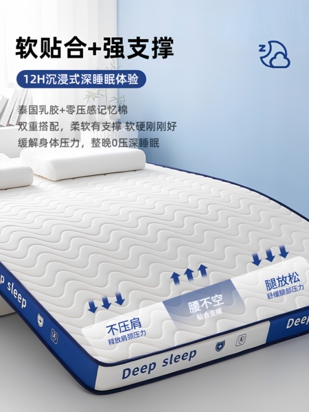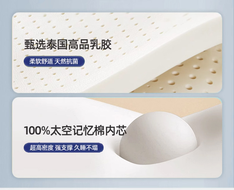 【深睡3.0】立体双拼Deep-白蓝/约9cm厚【真泰国进口天然乳胶/记忆棉护颈层】
