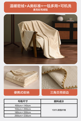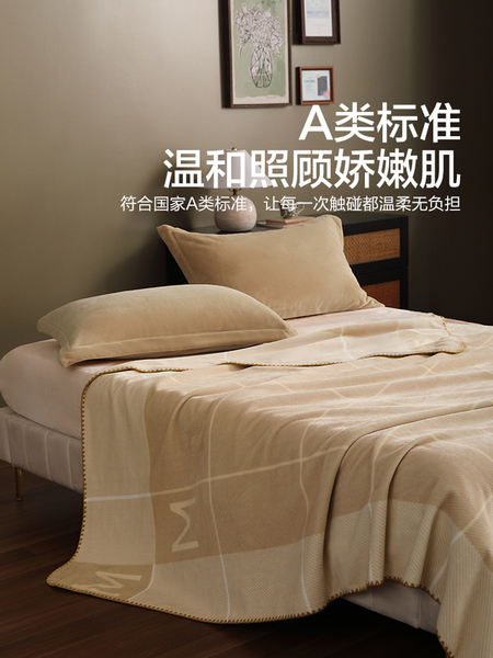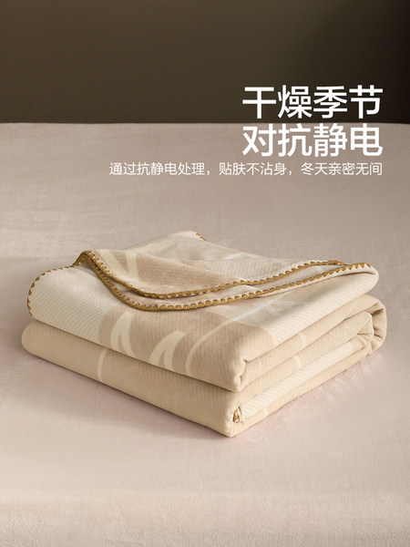 水星家纺仿羊毛绒感毛毯办公室午休毯A类保暖空调毯子盖毯高级感