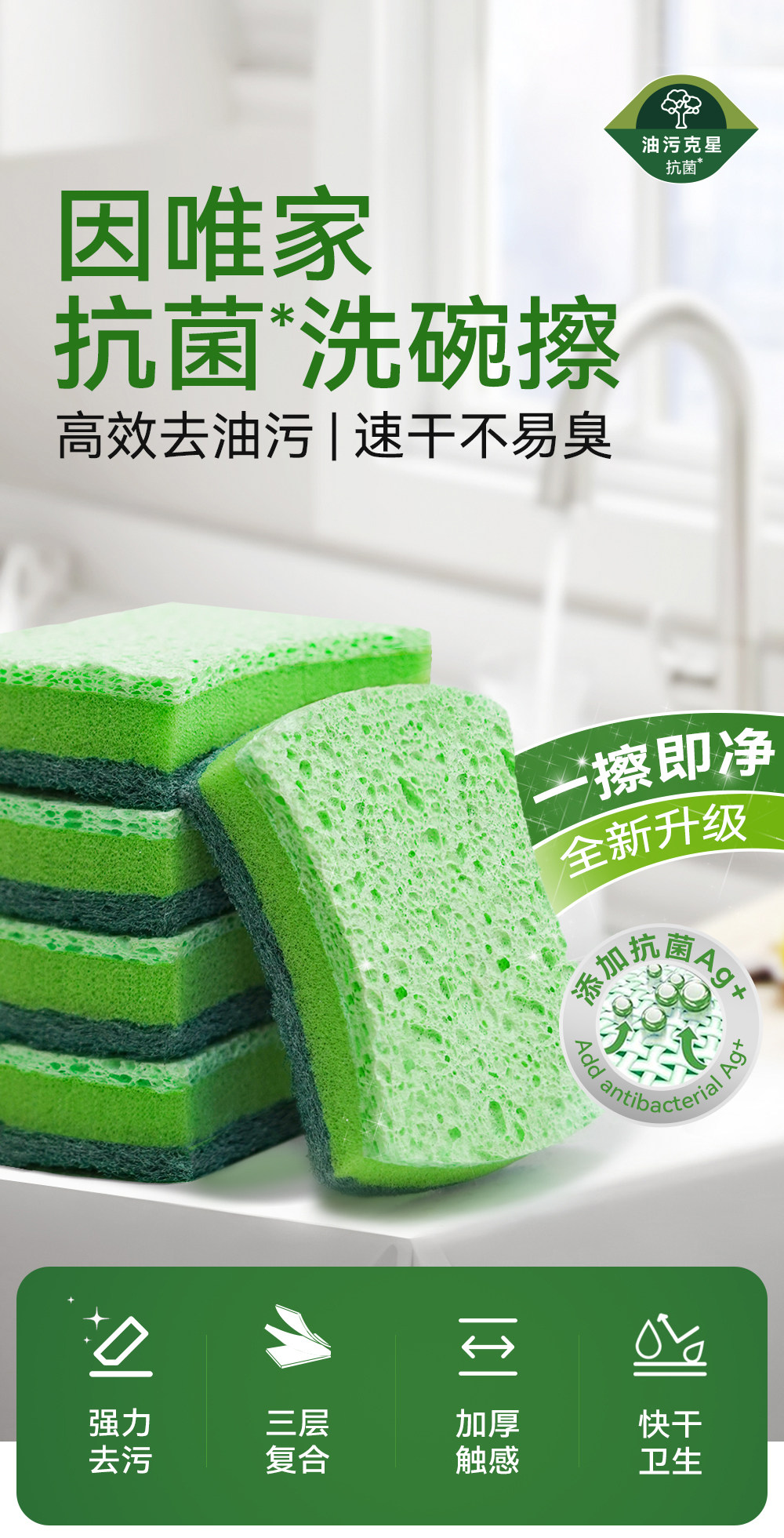 因唯家洗碗海绵擦刷碗神器魔力擦木浆棉刷锅的海绵百洁布厨房专用