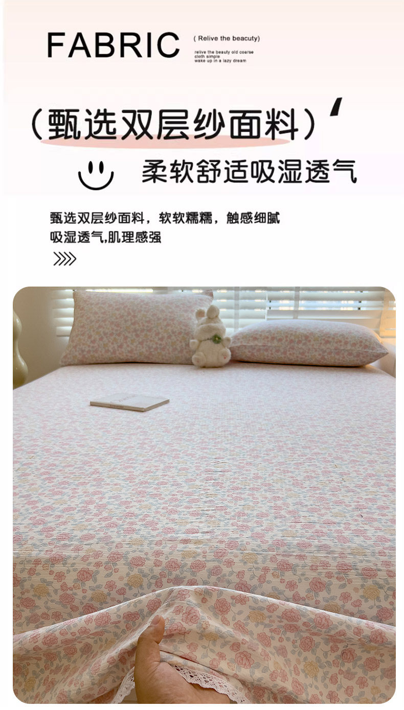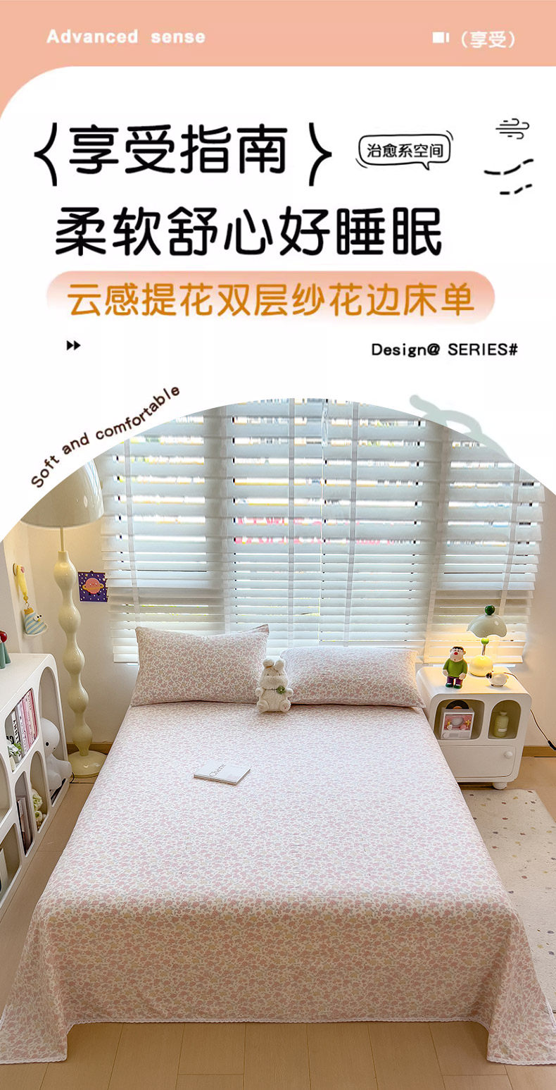 2026新款a类双层纱花边床单单件宿舍被单人枕套三件套非全棉纯棉2