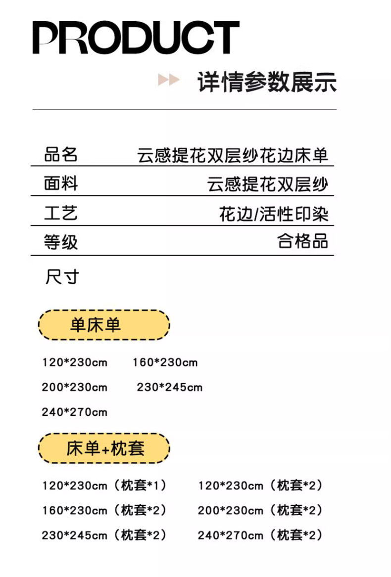 【适合0.9m床】单床单:120*245cm--建议拍2件换洗