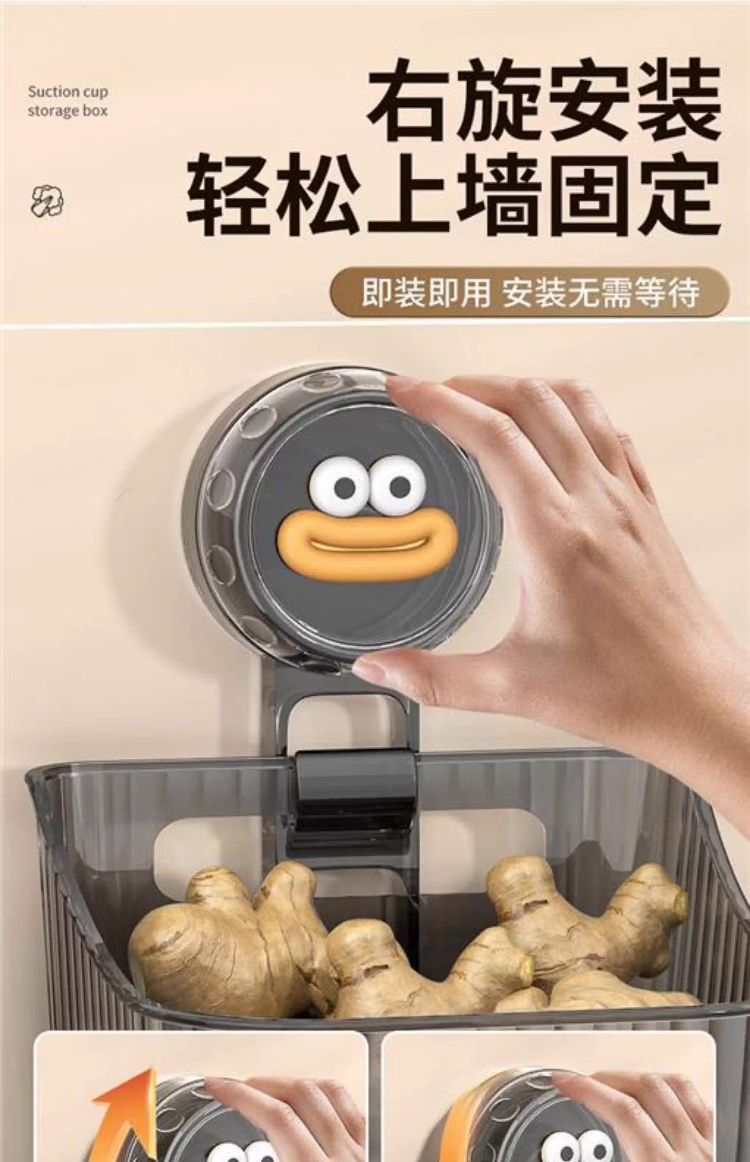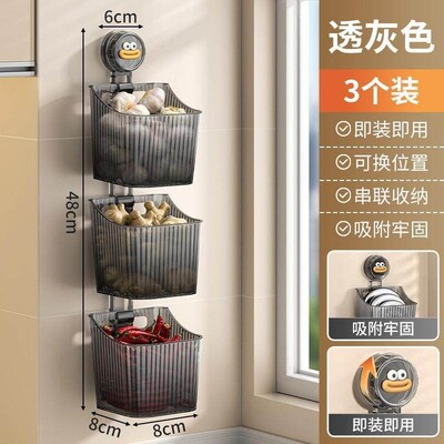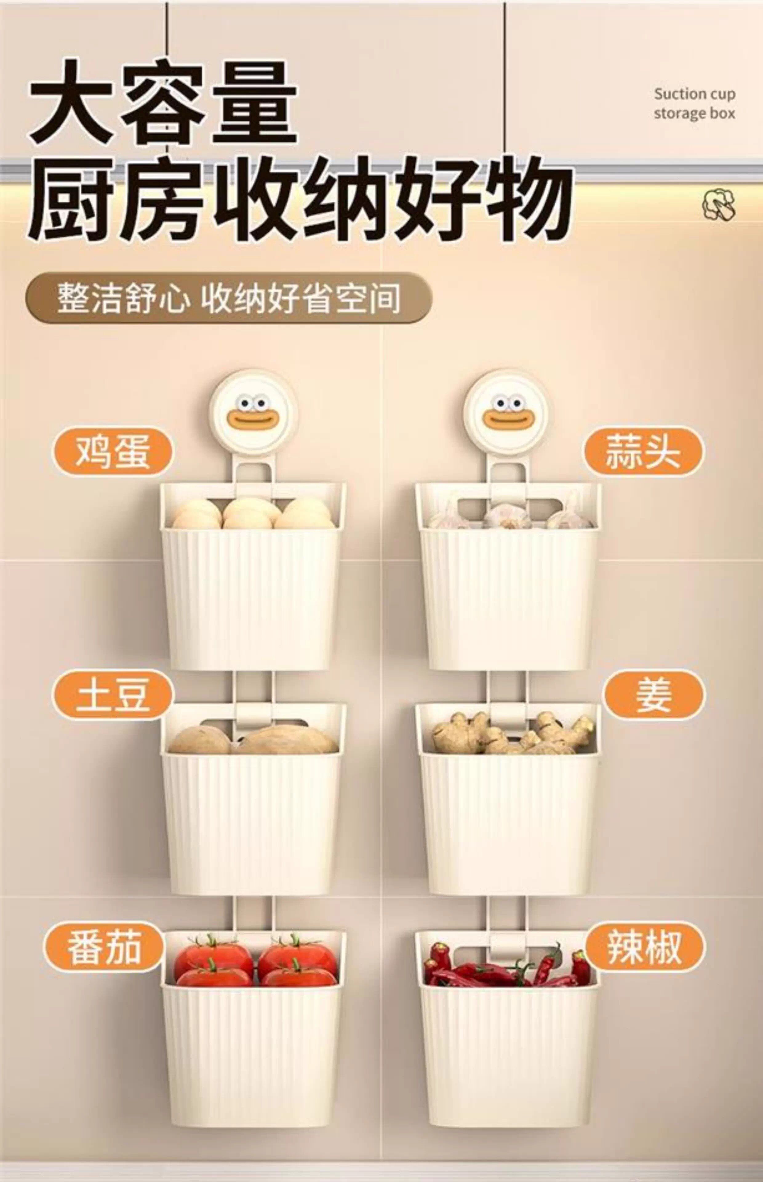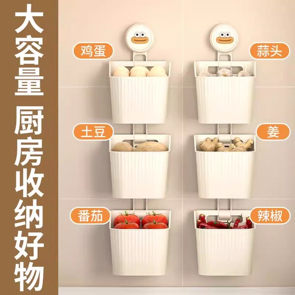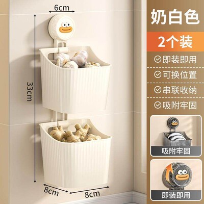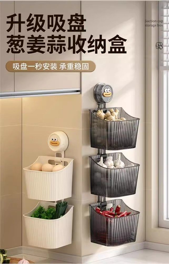 吸盘葱姜蒜收纳盒厨房置物架壁挂生姜大蒜收纳神器免打孔收纳挂篮