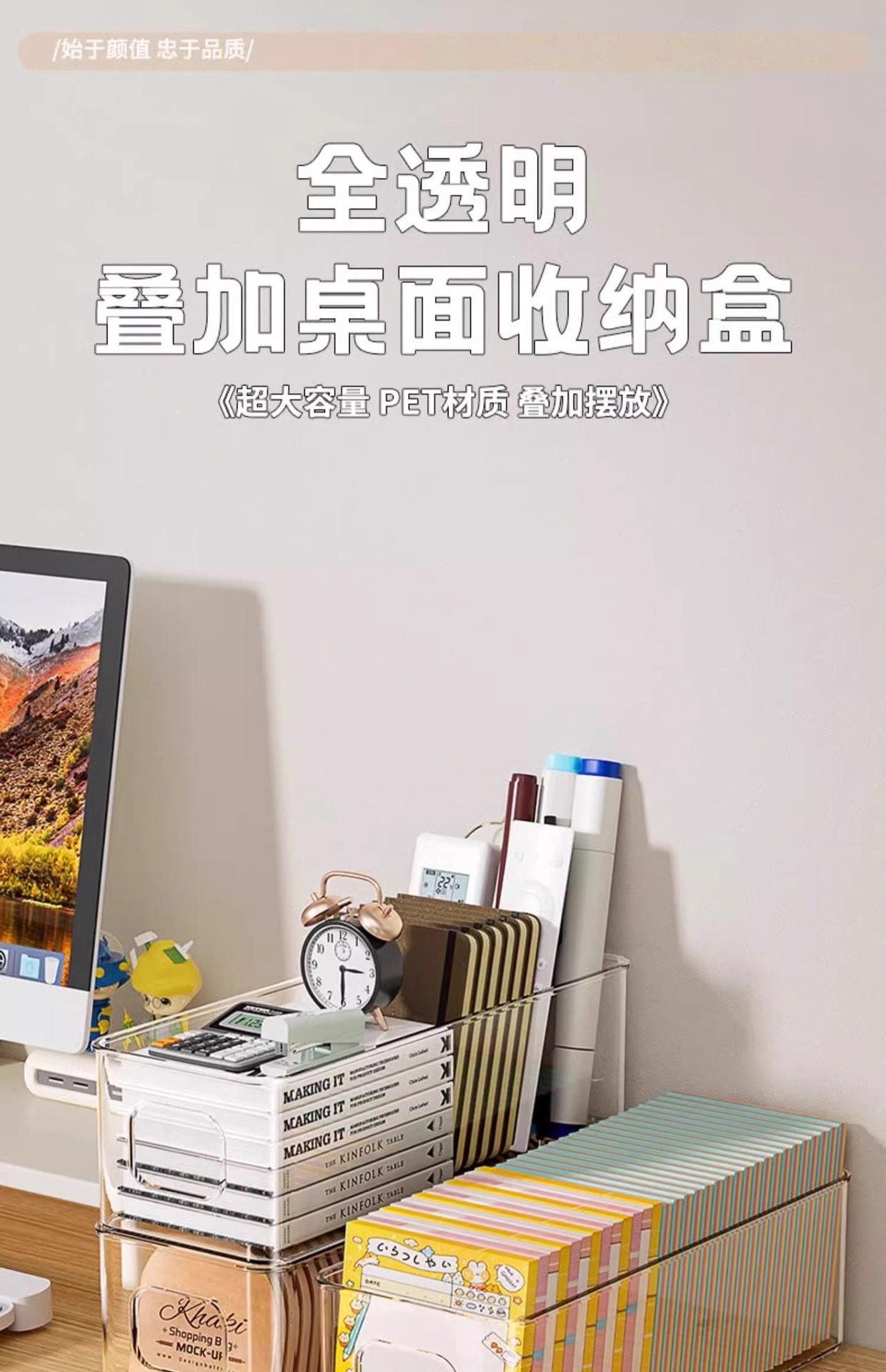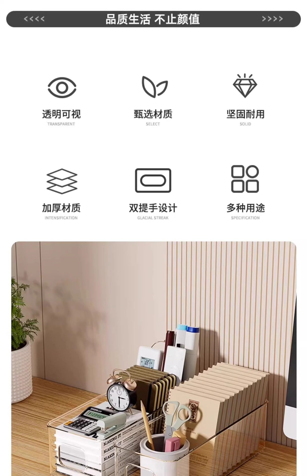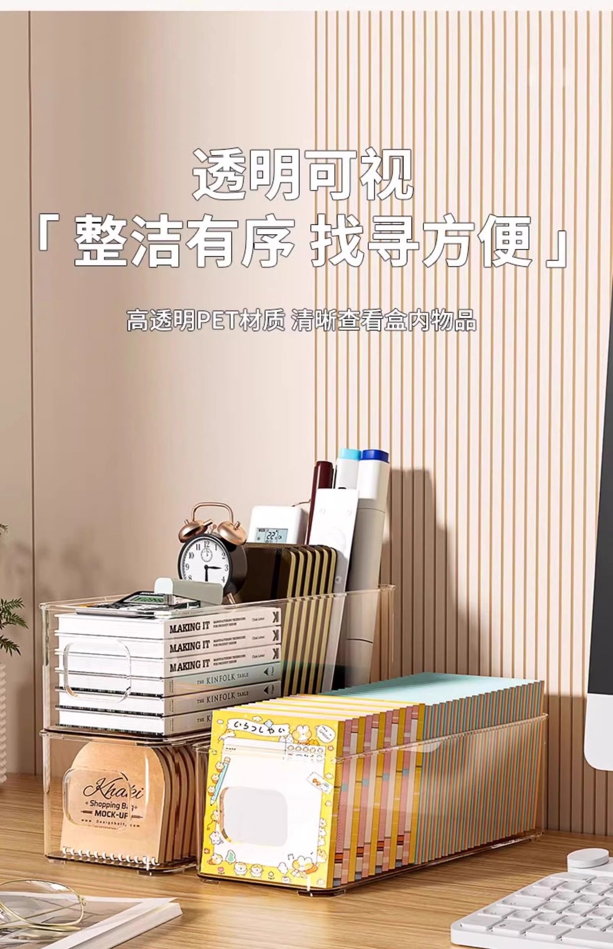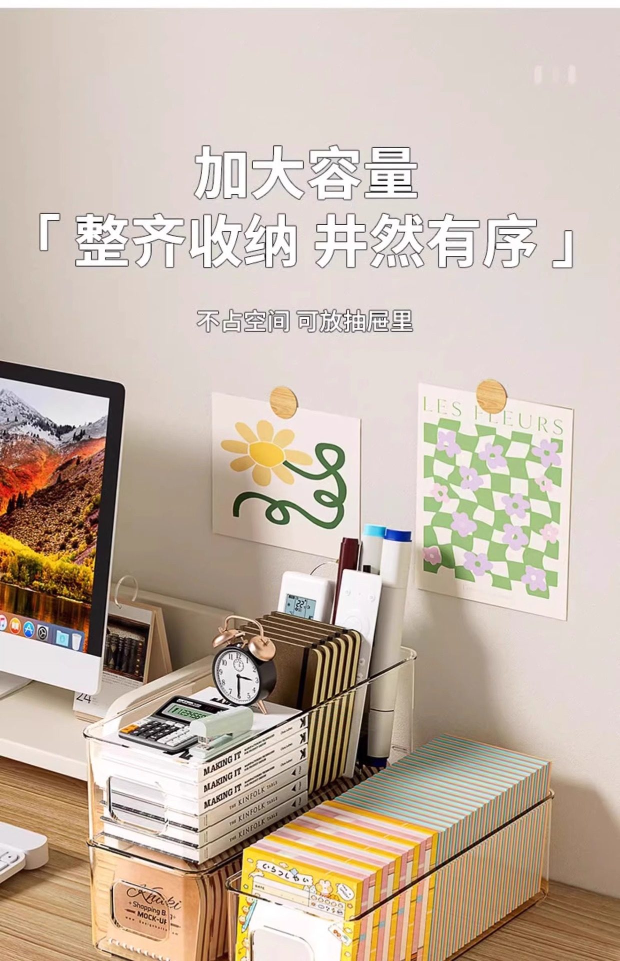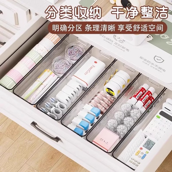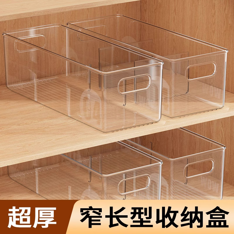桌面收纳盒长条窄长型透明杂物化妆品文具袜子整理盒小物件