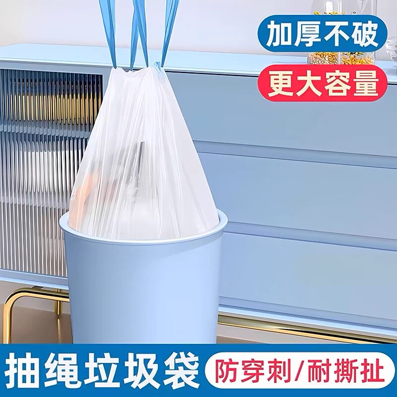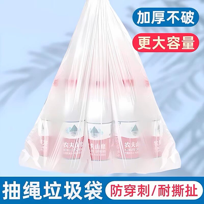 加厚抽绳垃圾袋家用手提式白色大号便携自动收口厨房清洁塑料袋子