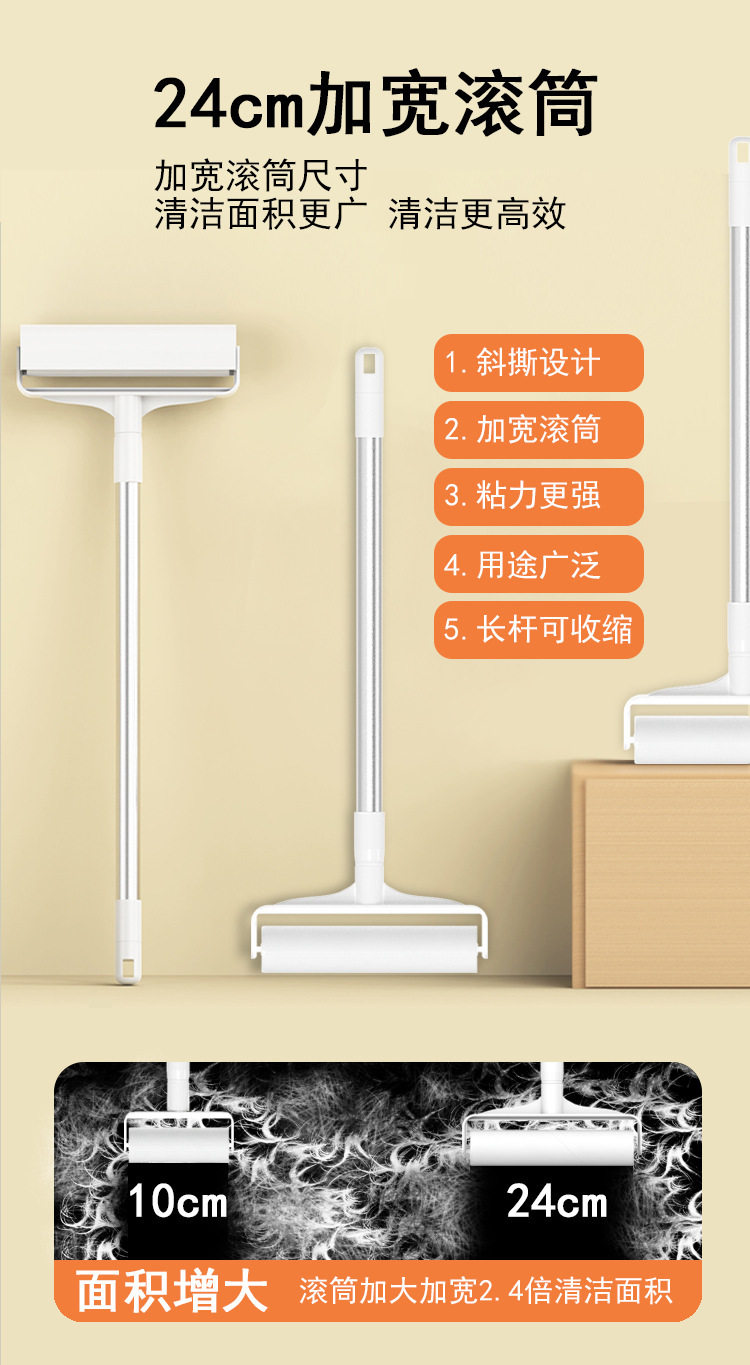 粘毛器粘毛滚筒长柄长杆滚刷地板扫地滚发除尘刷沾毛神器