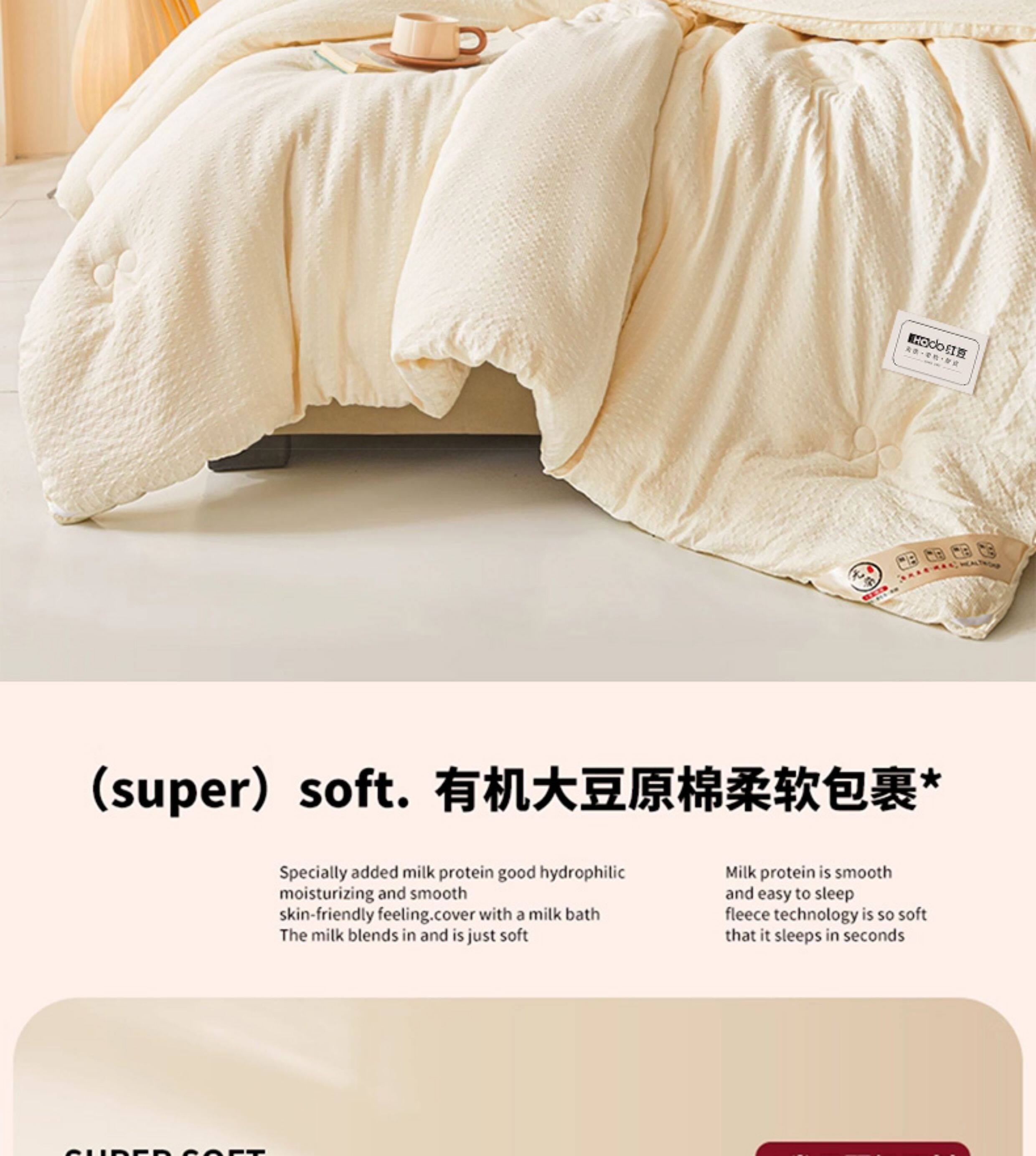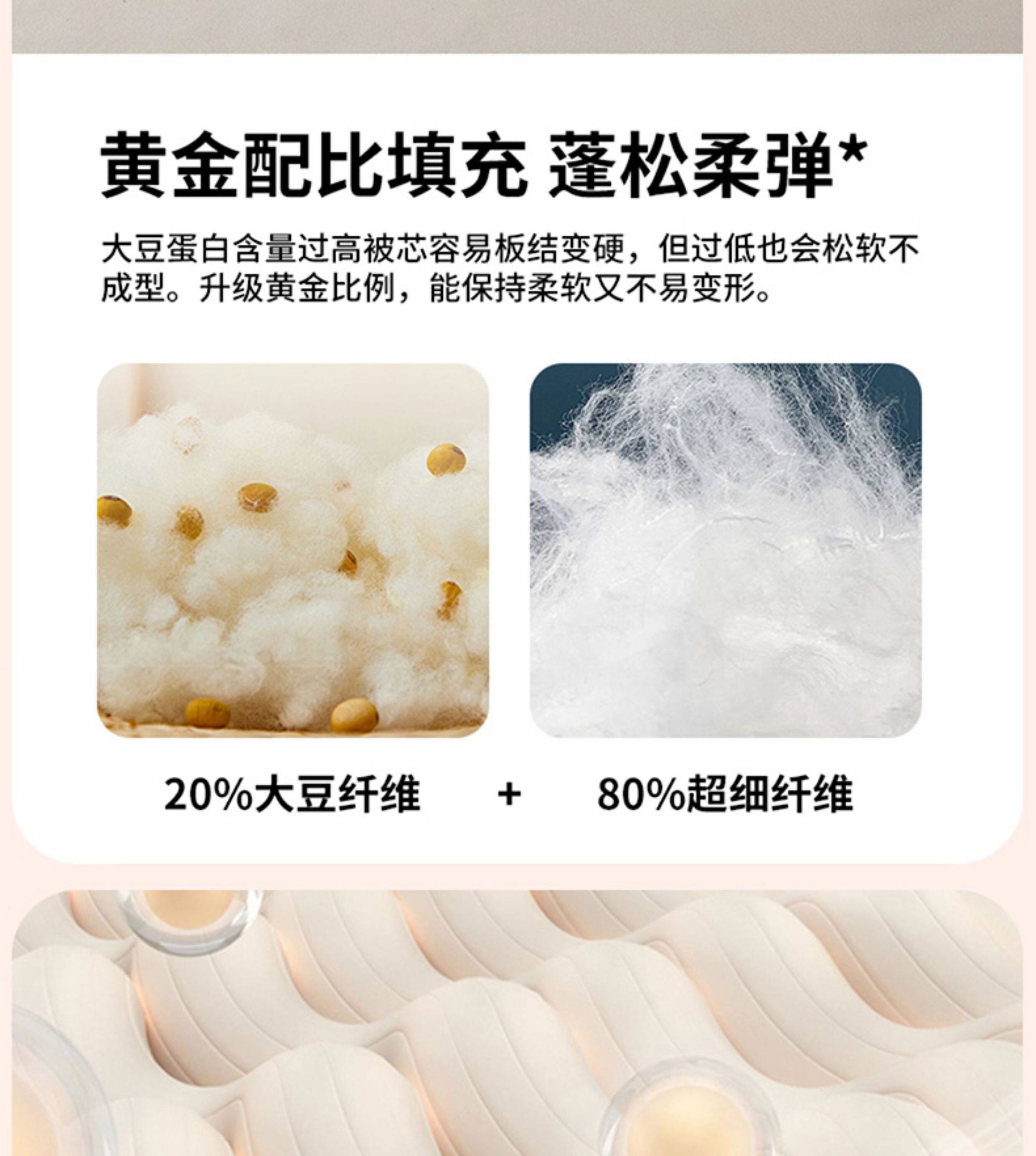 升级抑菌填充-奶杏白【大豆纤维填充-提花面料-柔软蓬松】
