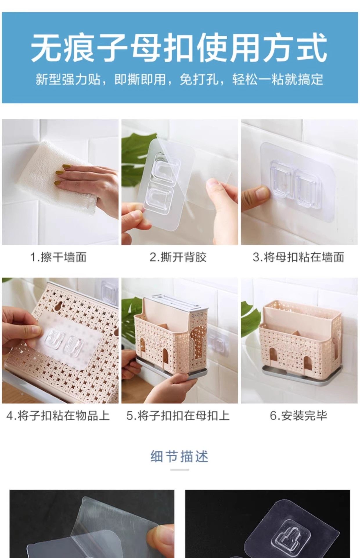 不伤墙面【6套装】6子扣+6母扣