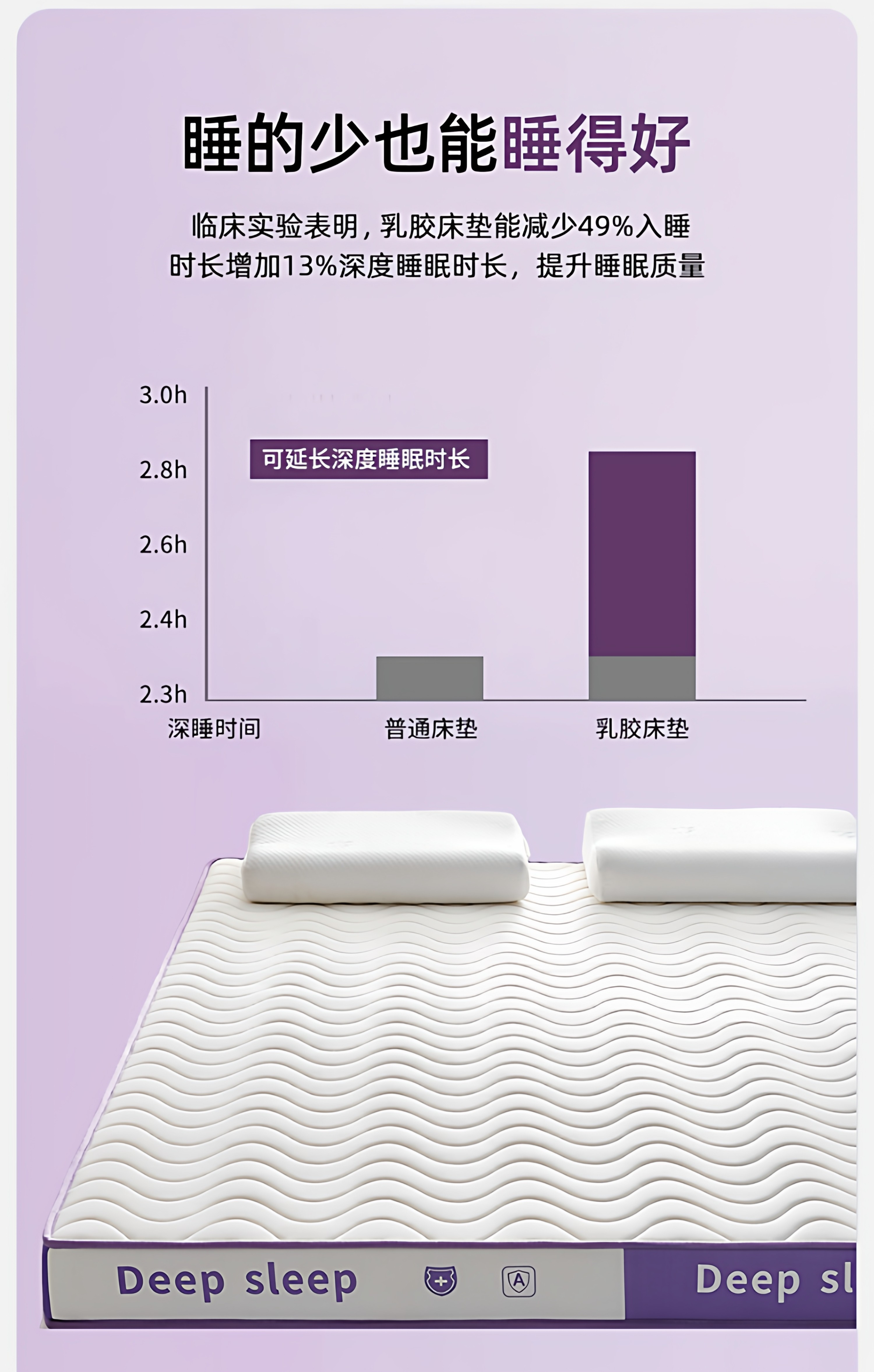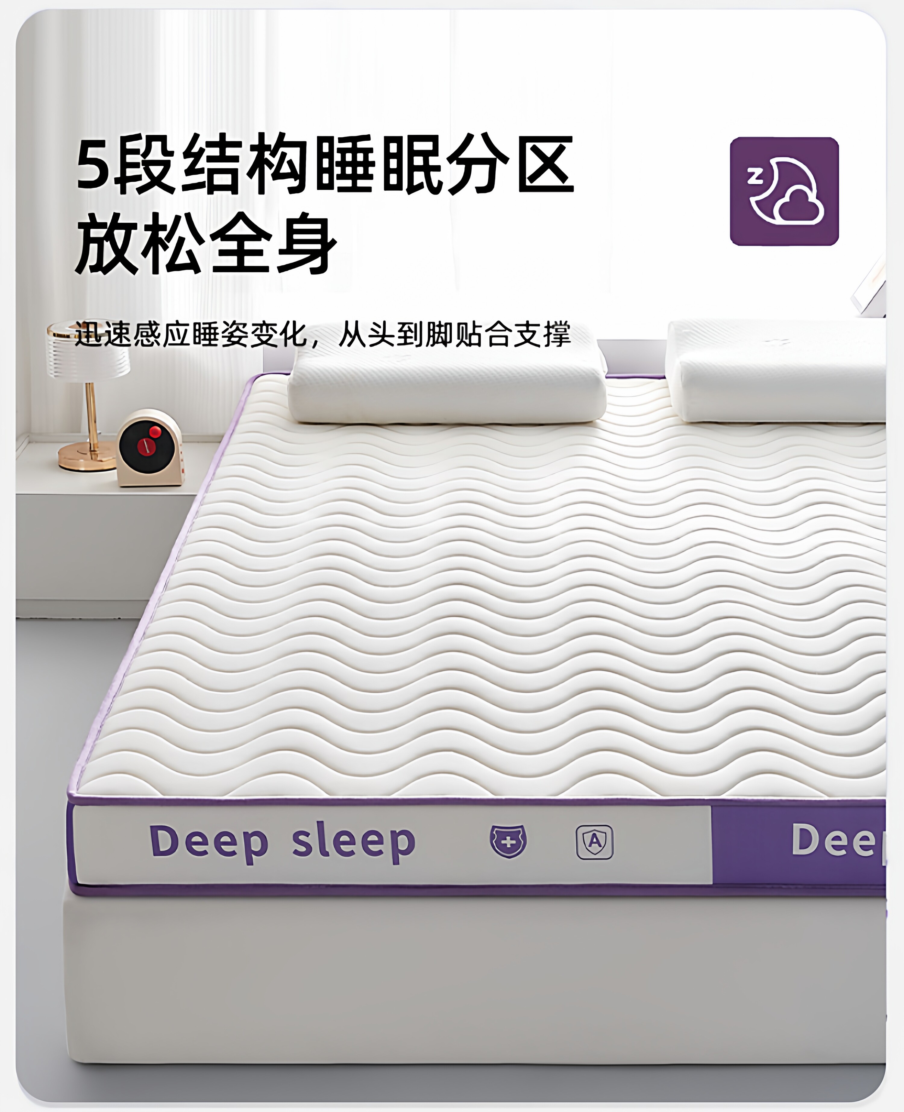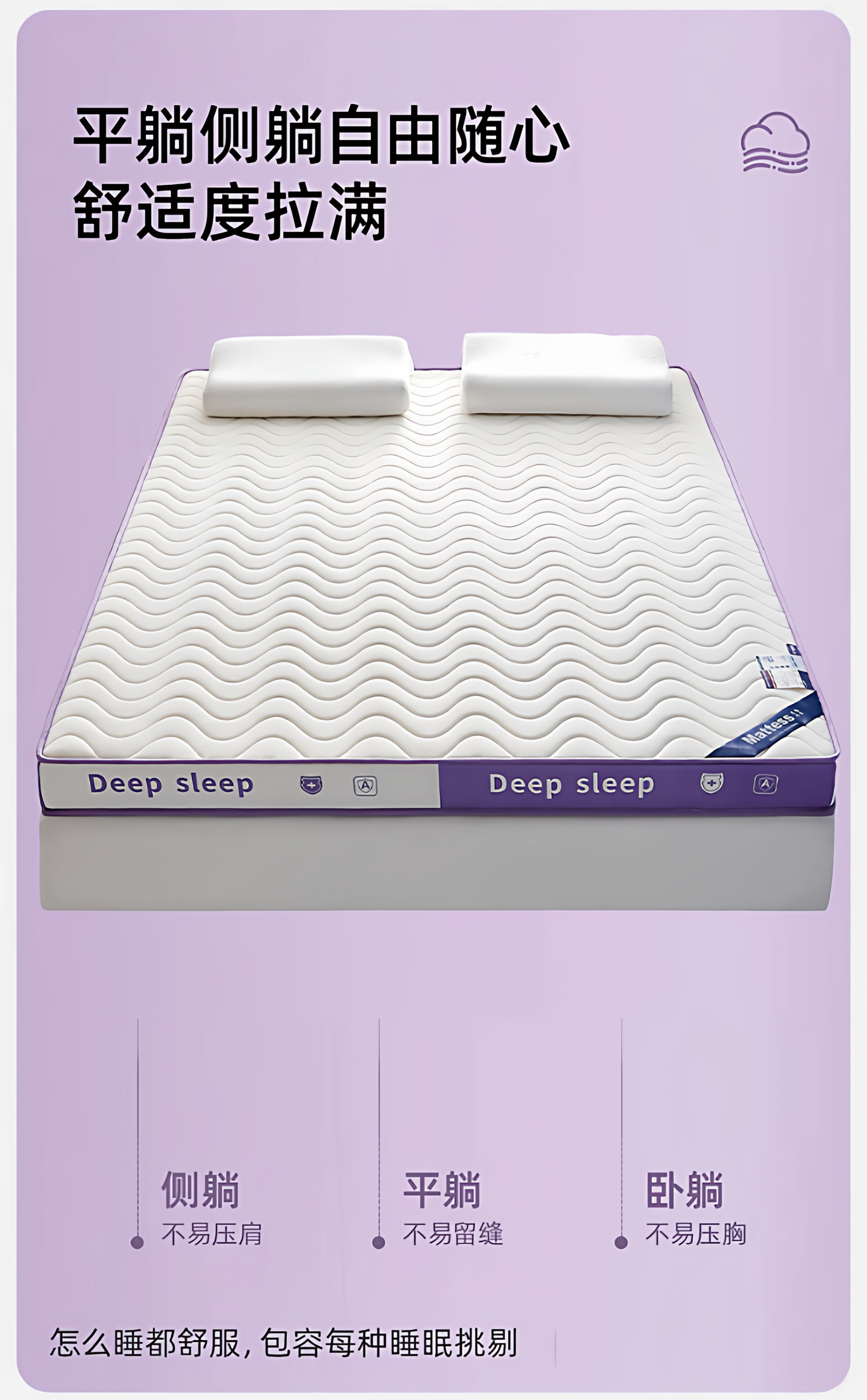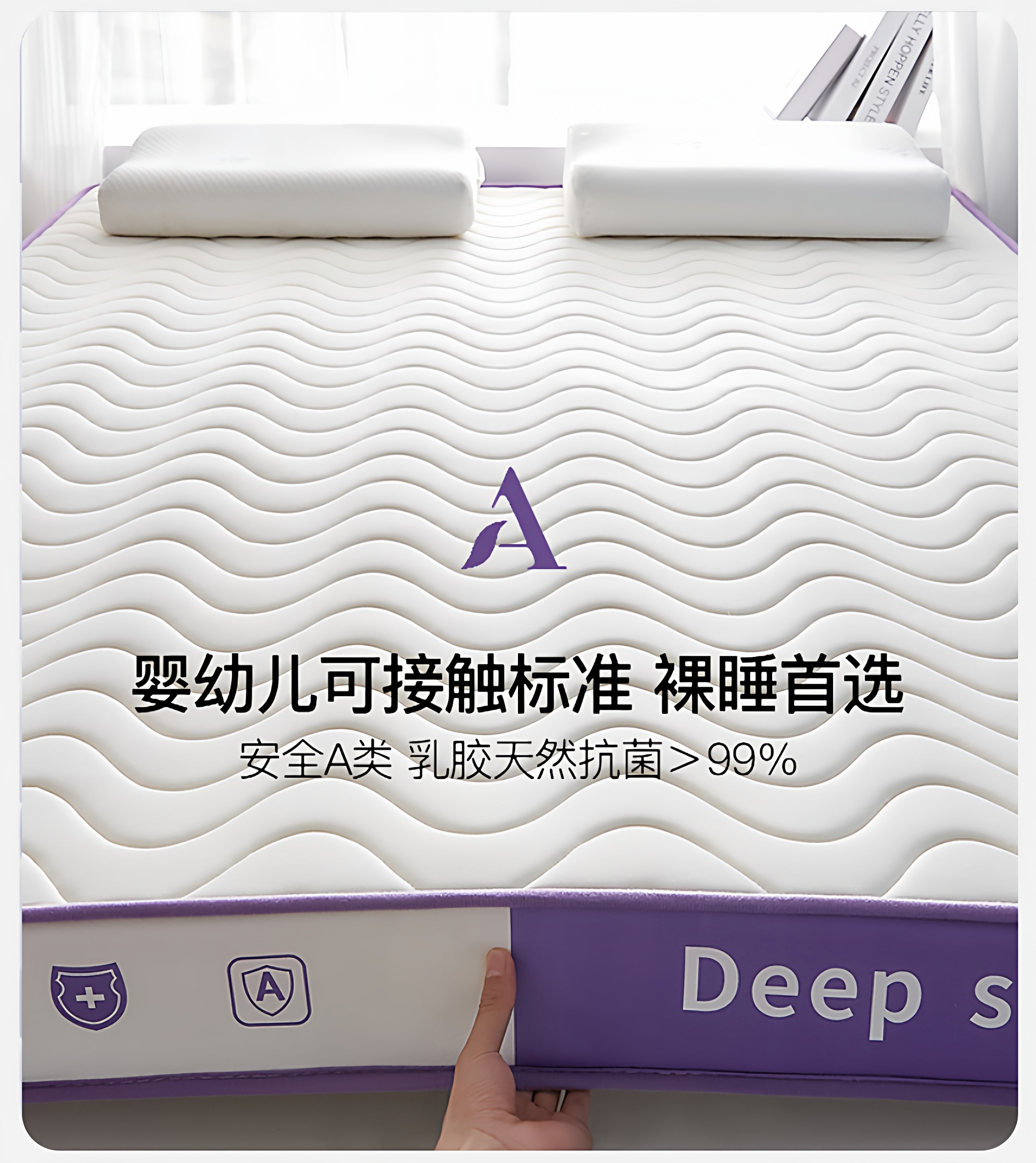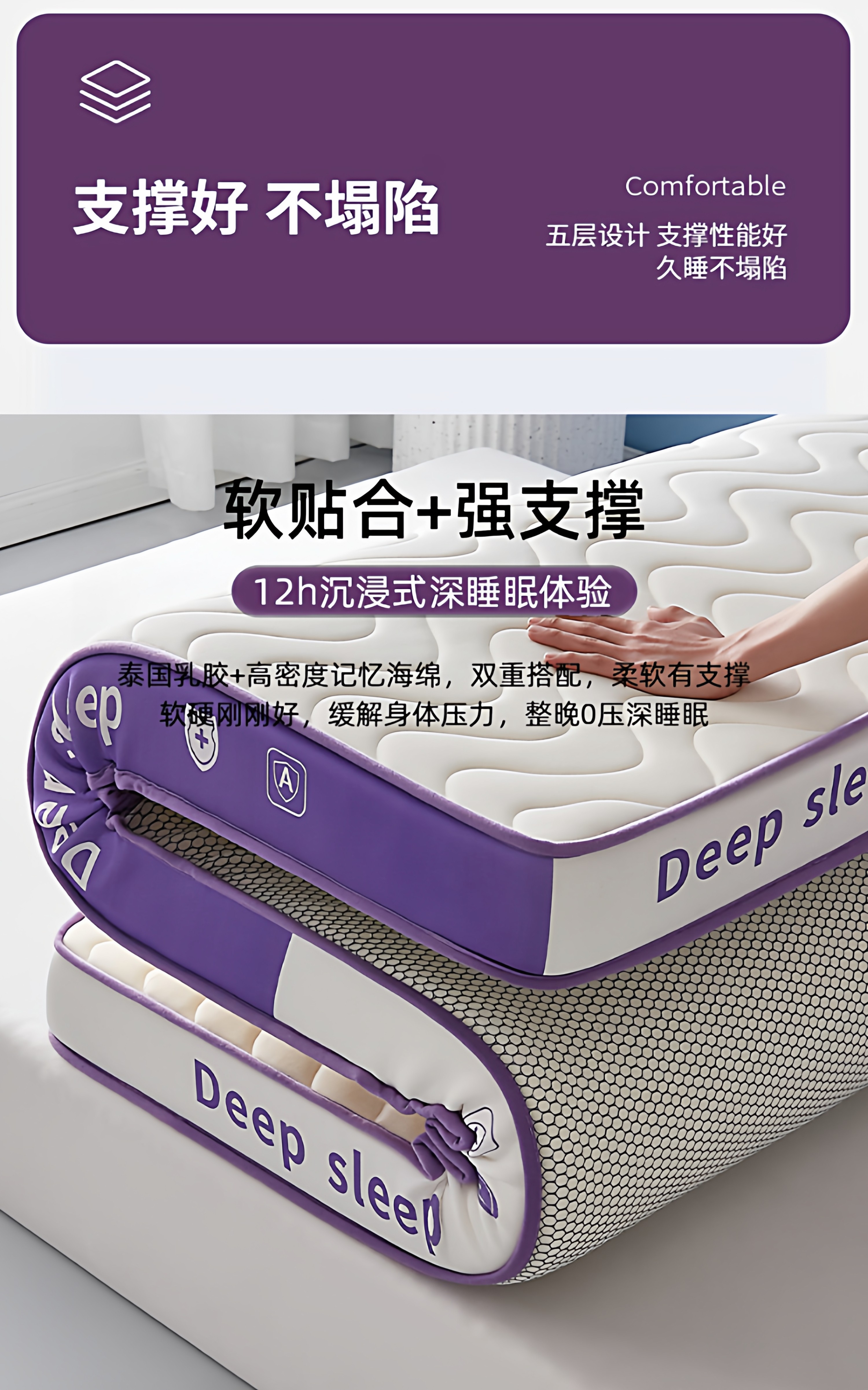 【深睡3.0】立体双拼Deep-白紫/约9cm厚【真泰国进口天然乳胶/记忆棉护颈层】