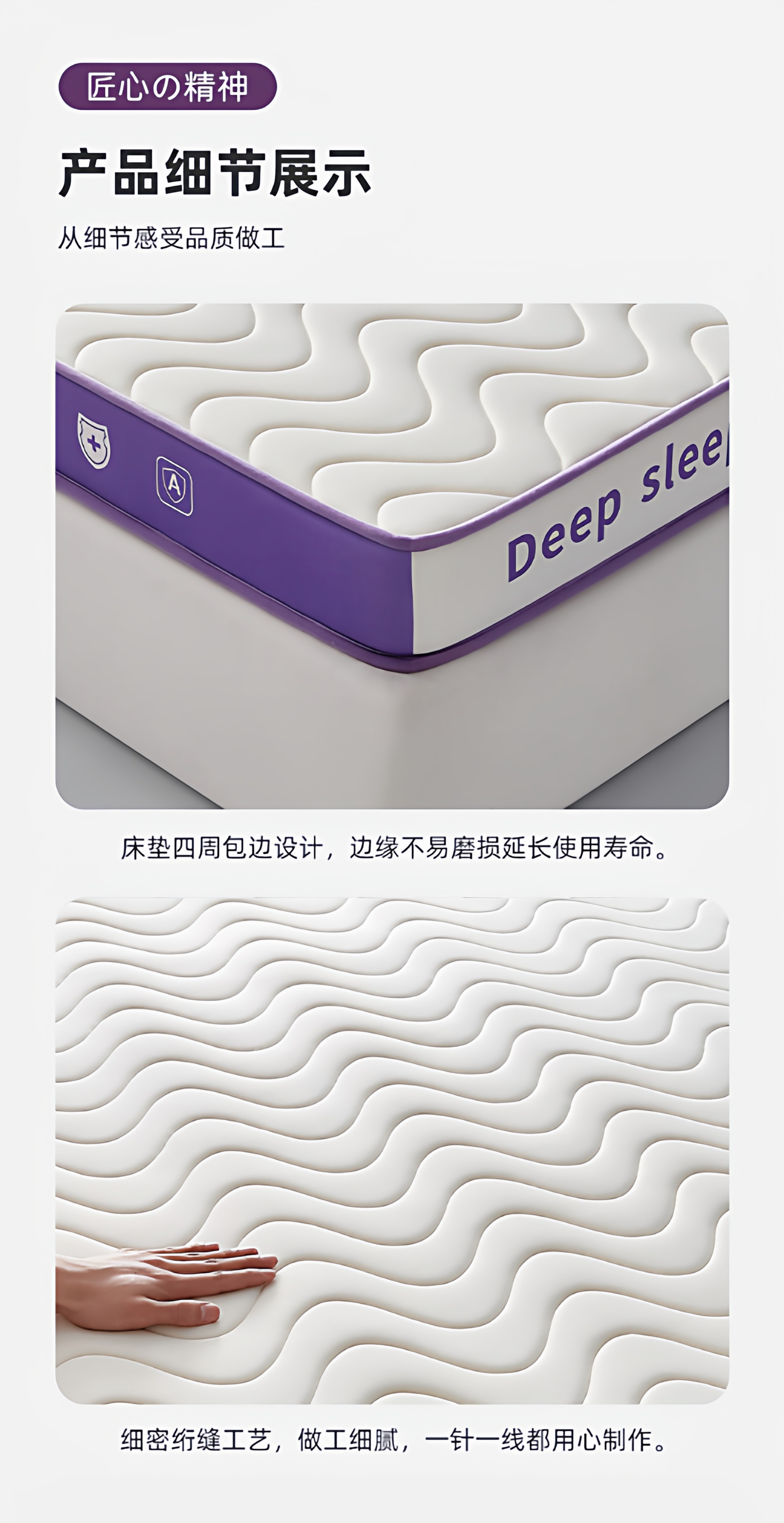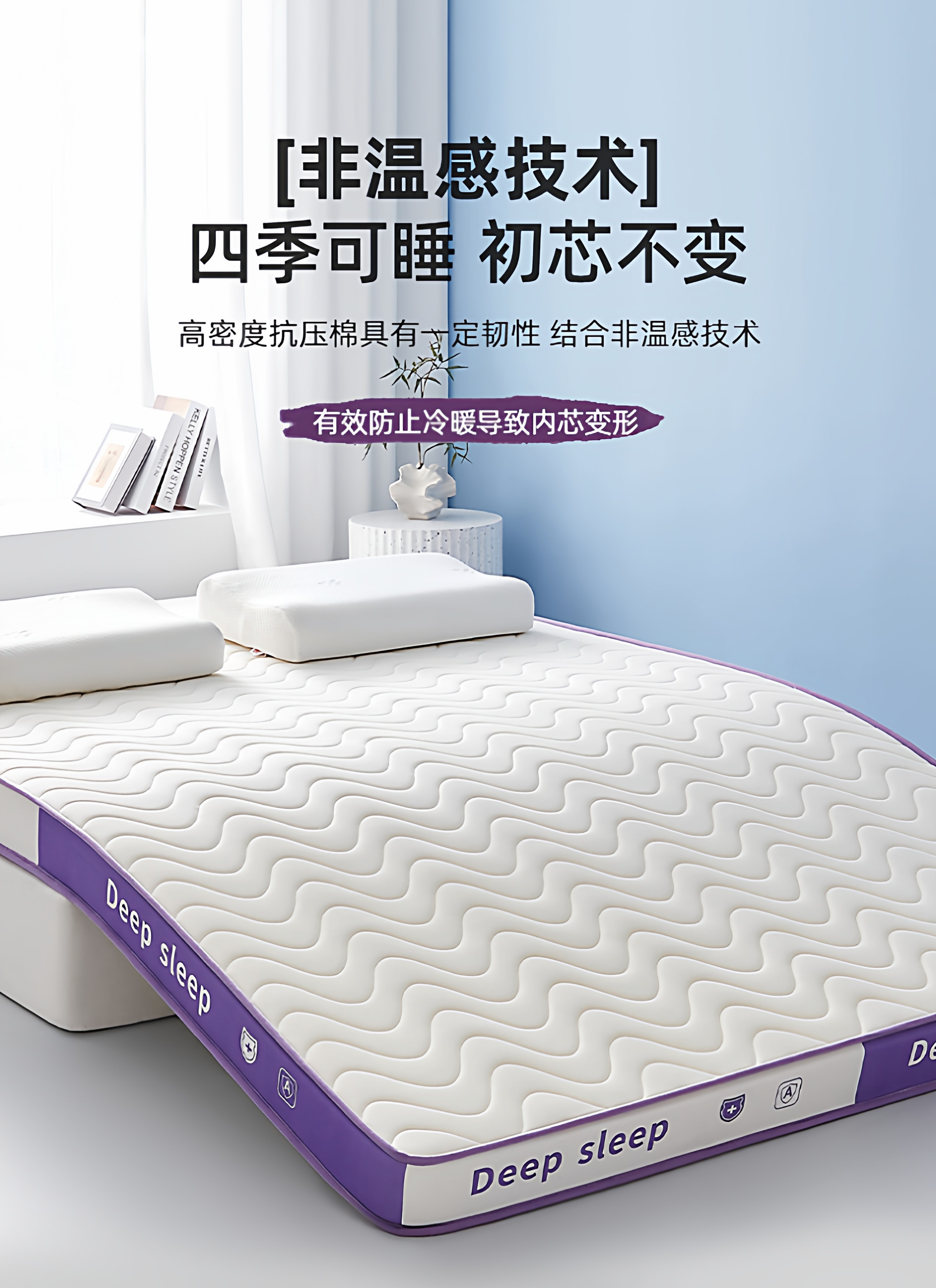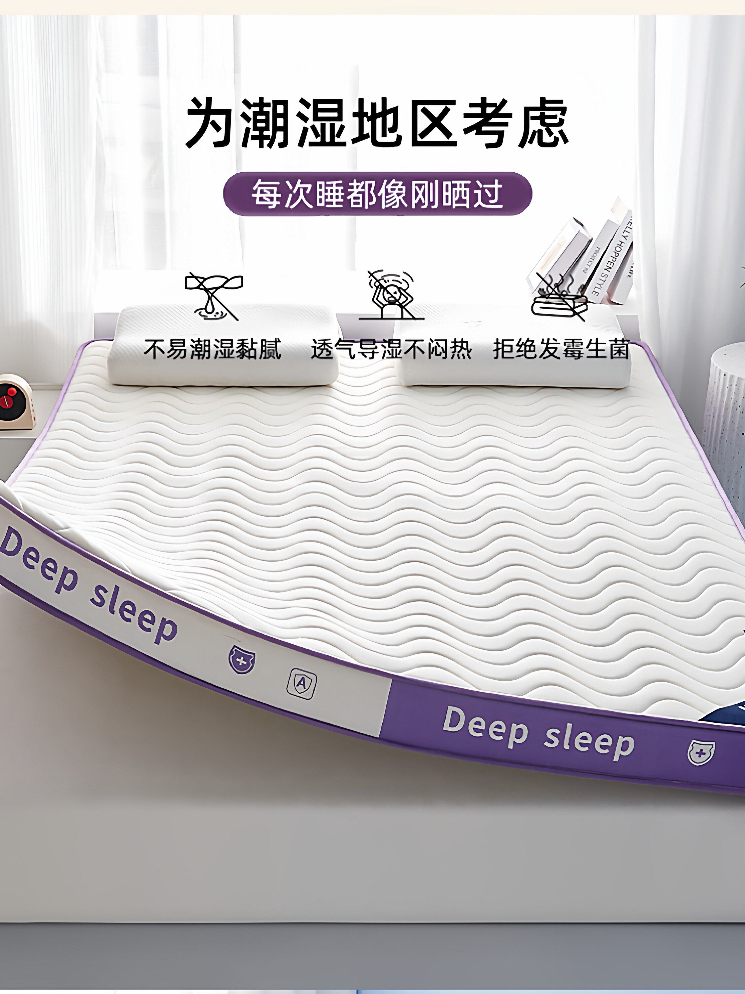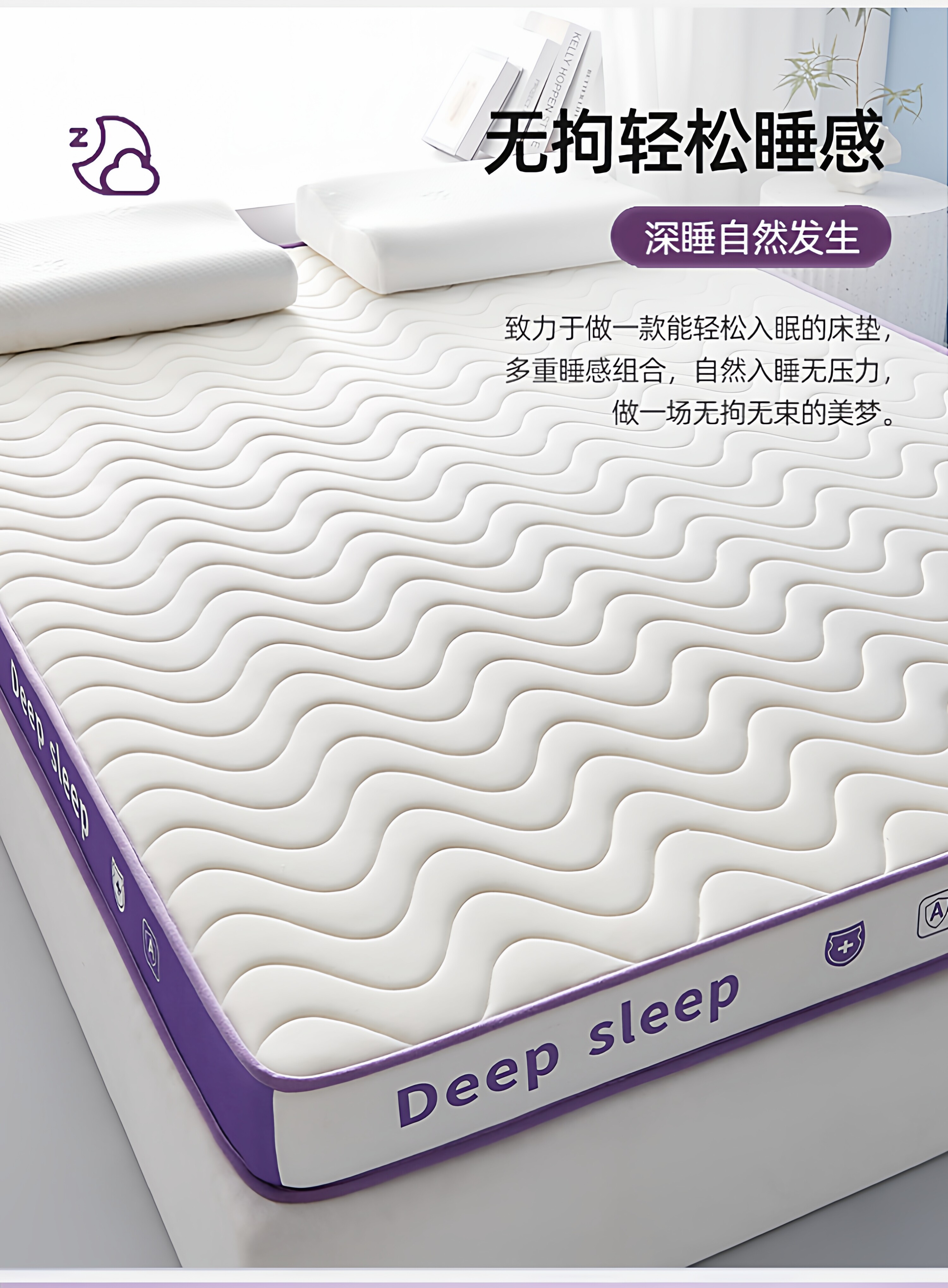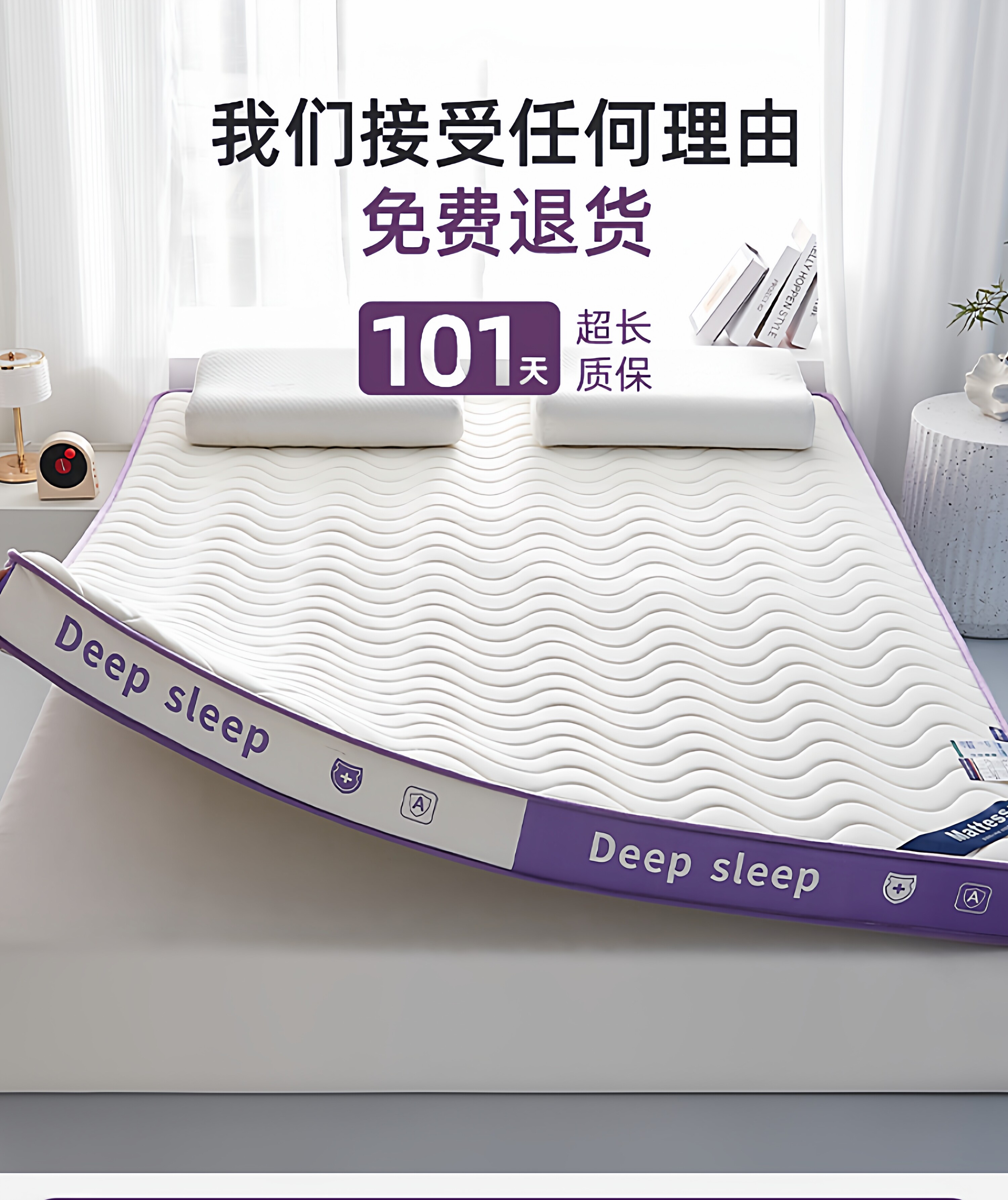 【深睡3.0】立体双拼Deep-白紫/约9cm厚【真泰国进口天然乳胶/记忆棉护颈层】