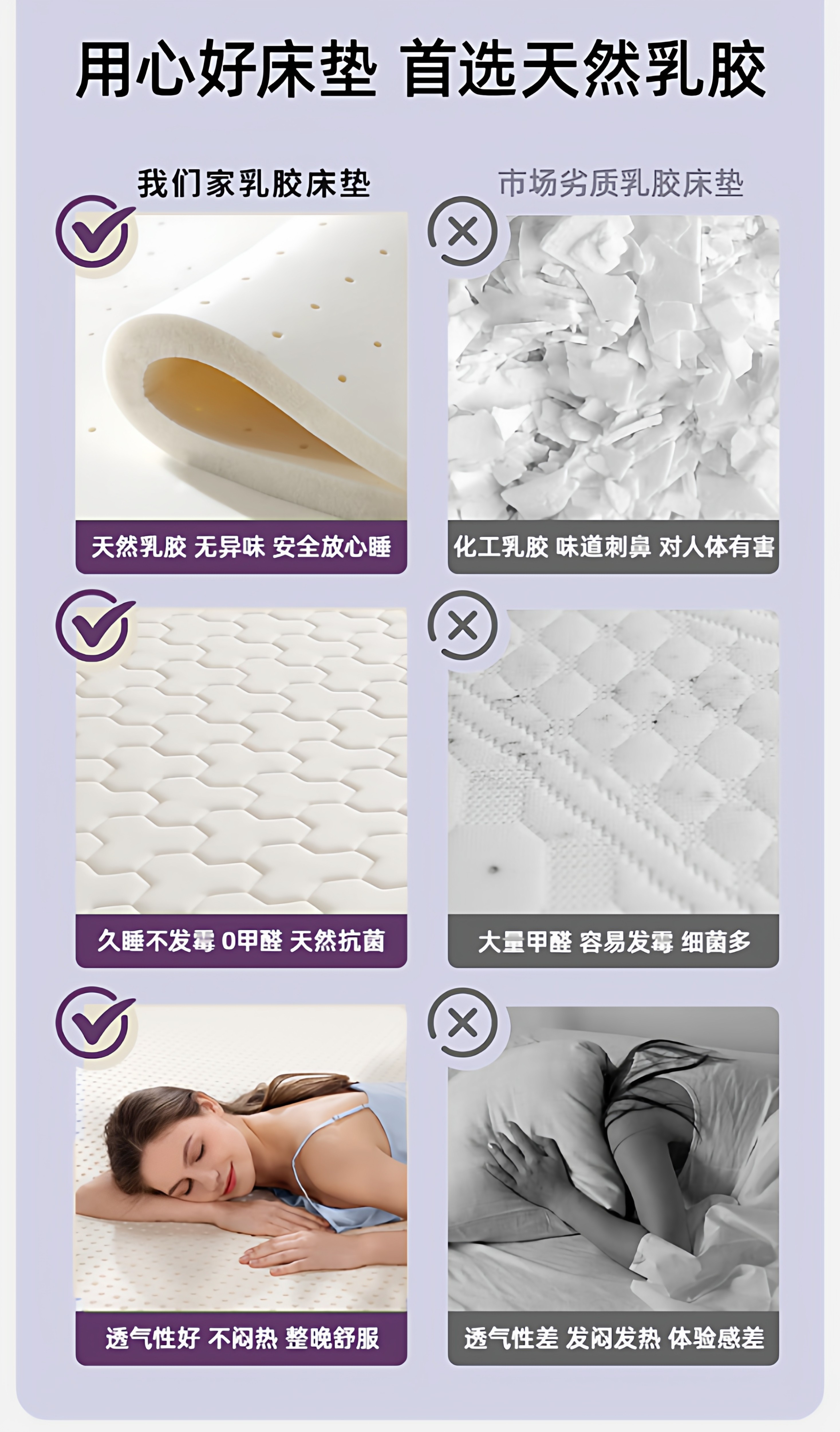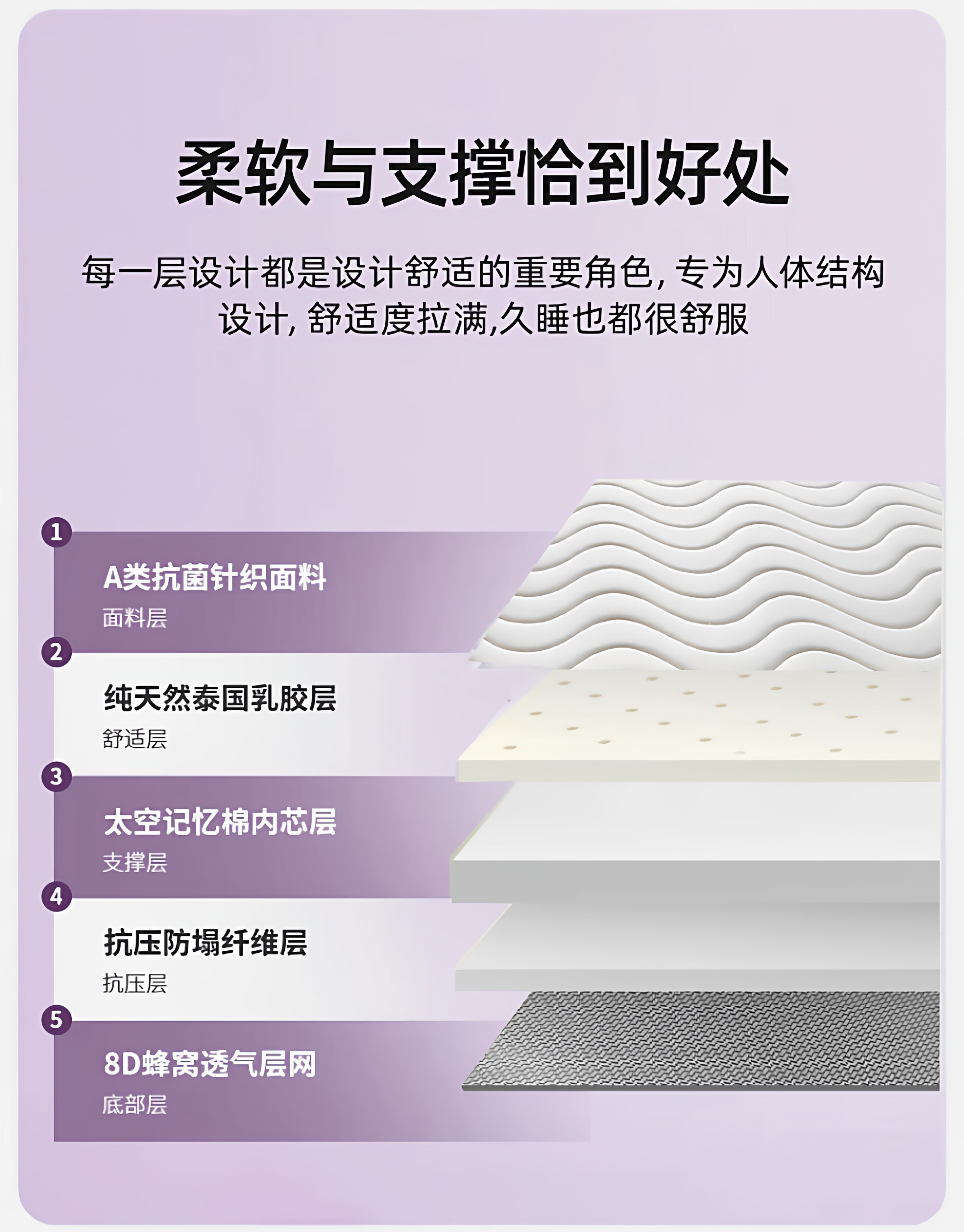 【深睡3.0】立体双拼Deep-白紫/约6cm厚【真泰国进口天然乳胶/记忆棉护颈层】