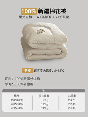 2025新款A类全棉抗菌棉花被子四季用新疆棉春秋被芯保暖宿舍单人