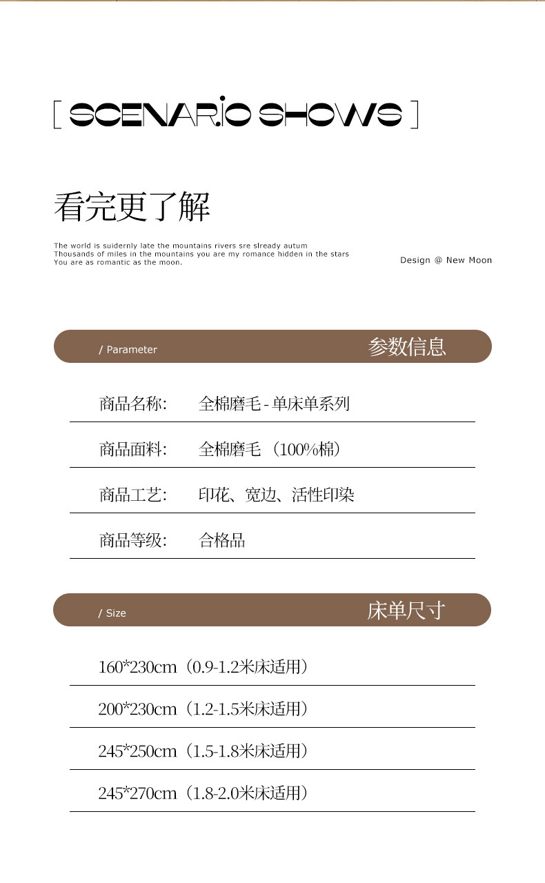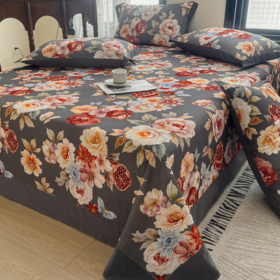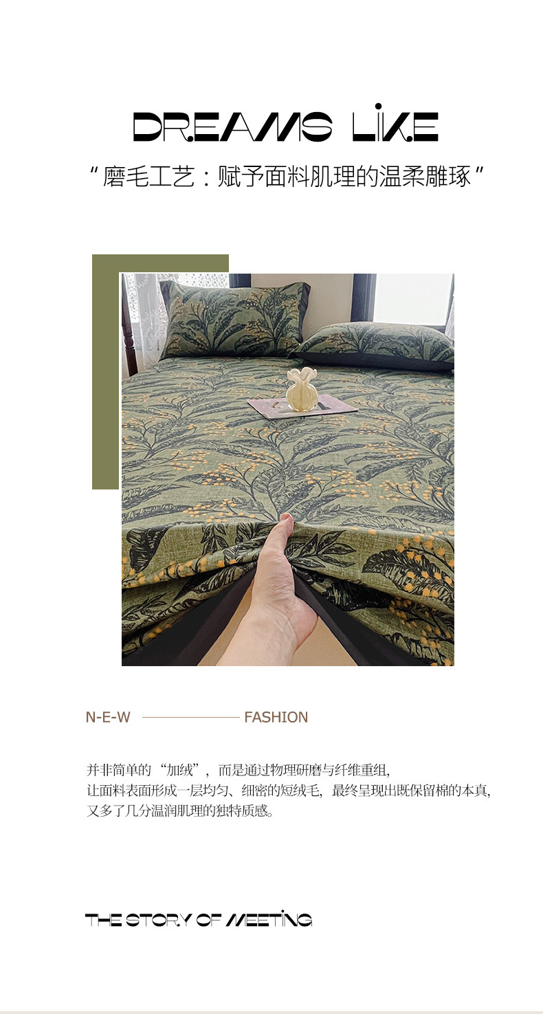 轻奢复古纯棉磨毛床单单件全棉高级感被单双人席梦思床笠罩三件套