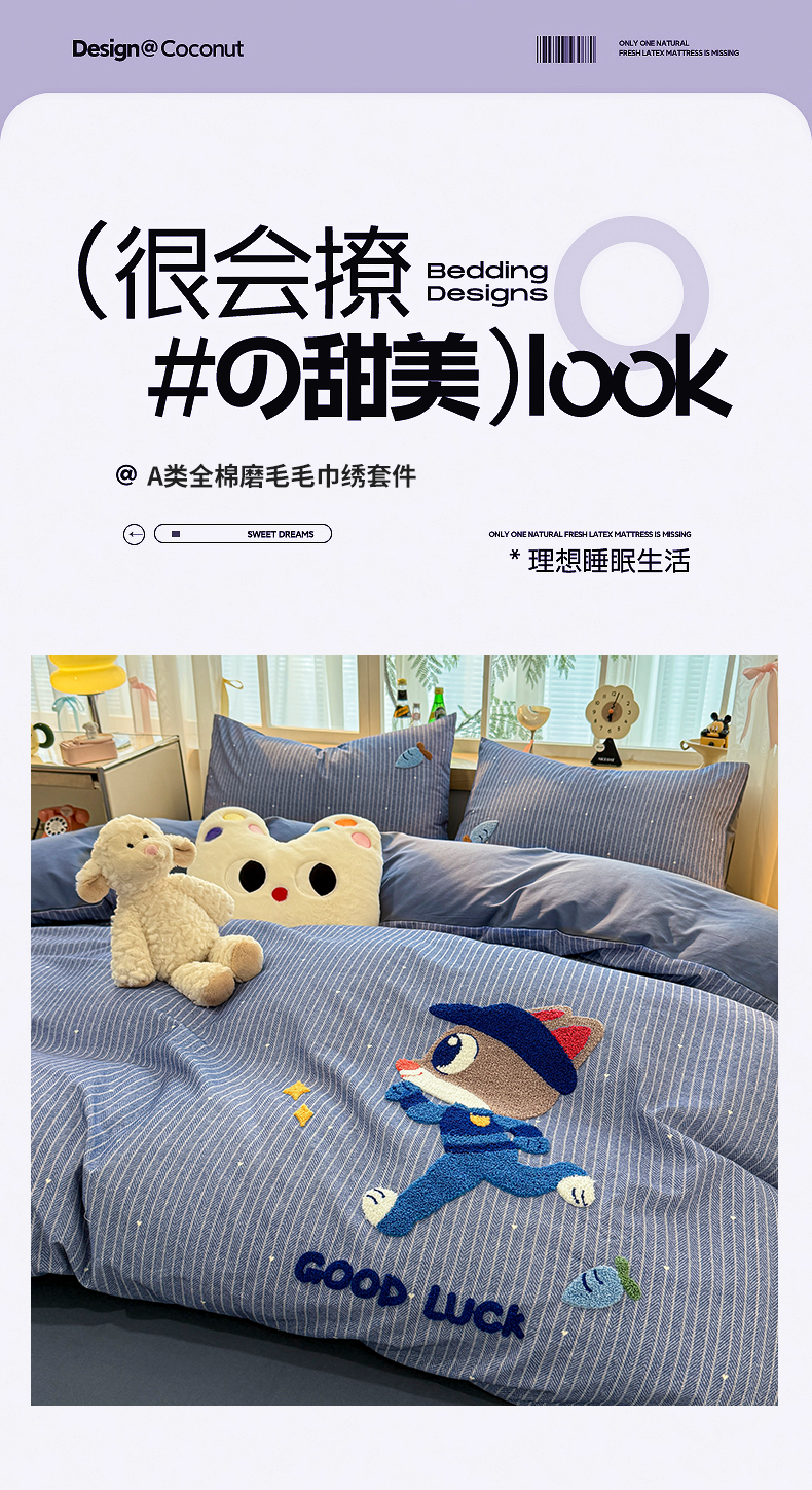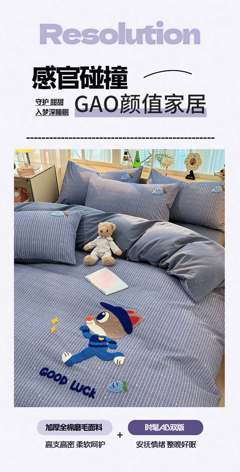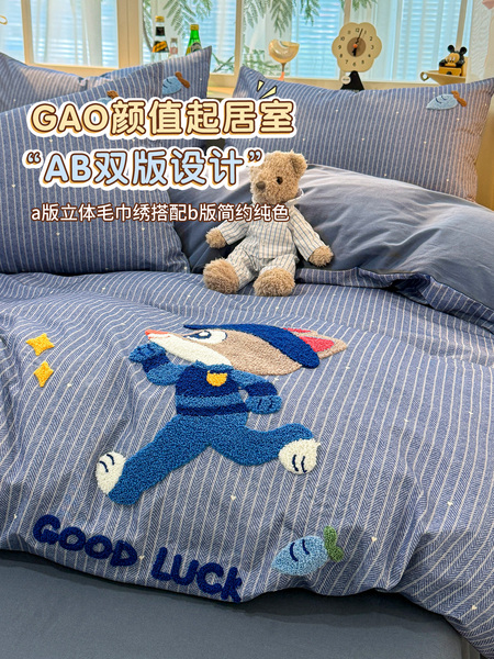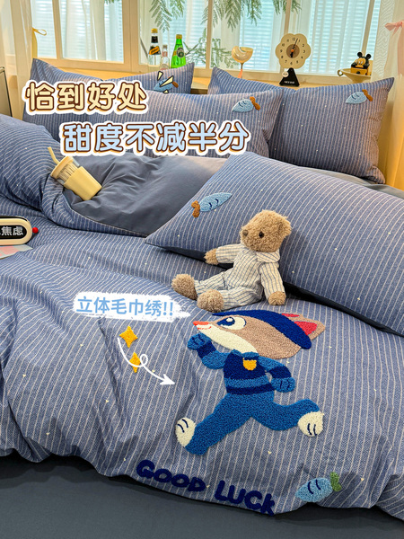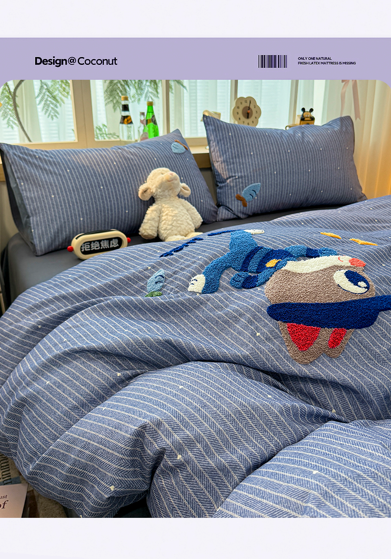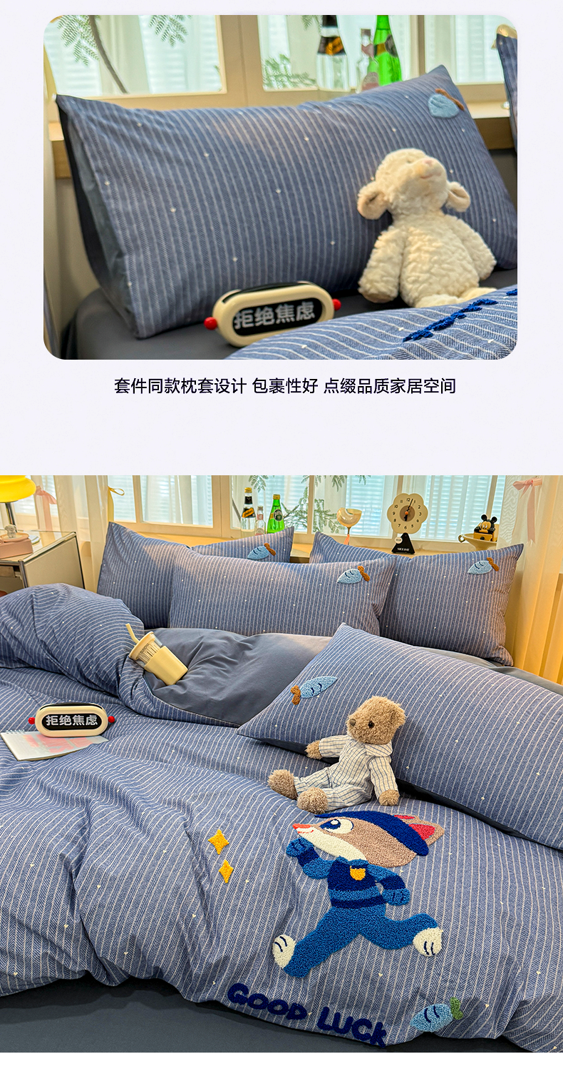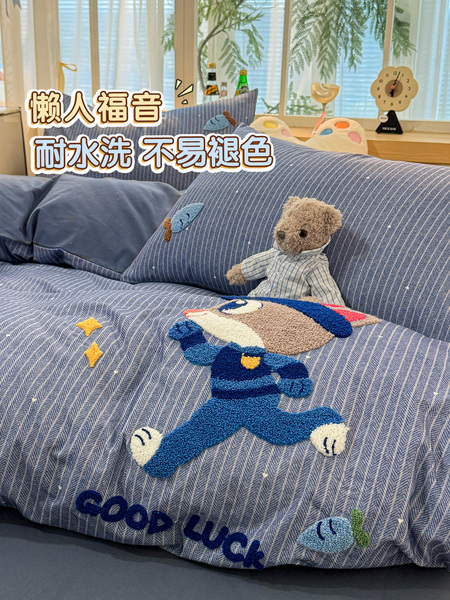 A类纯棉磨毛床品四件套儿童卡通全棉刺绣被套床单宿舍床上三件套4
