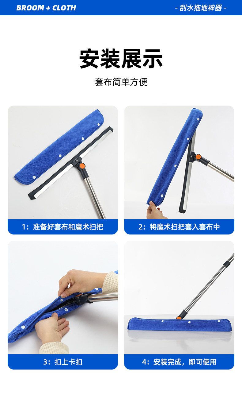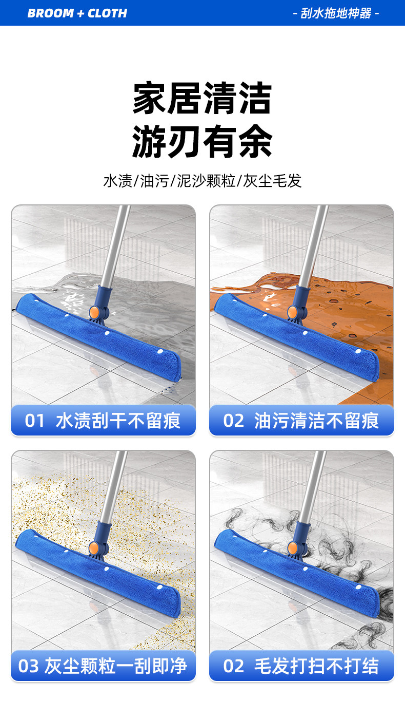 大号55cm魔术扫把+4块套布【扫刮擦3合一】
