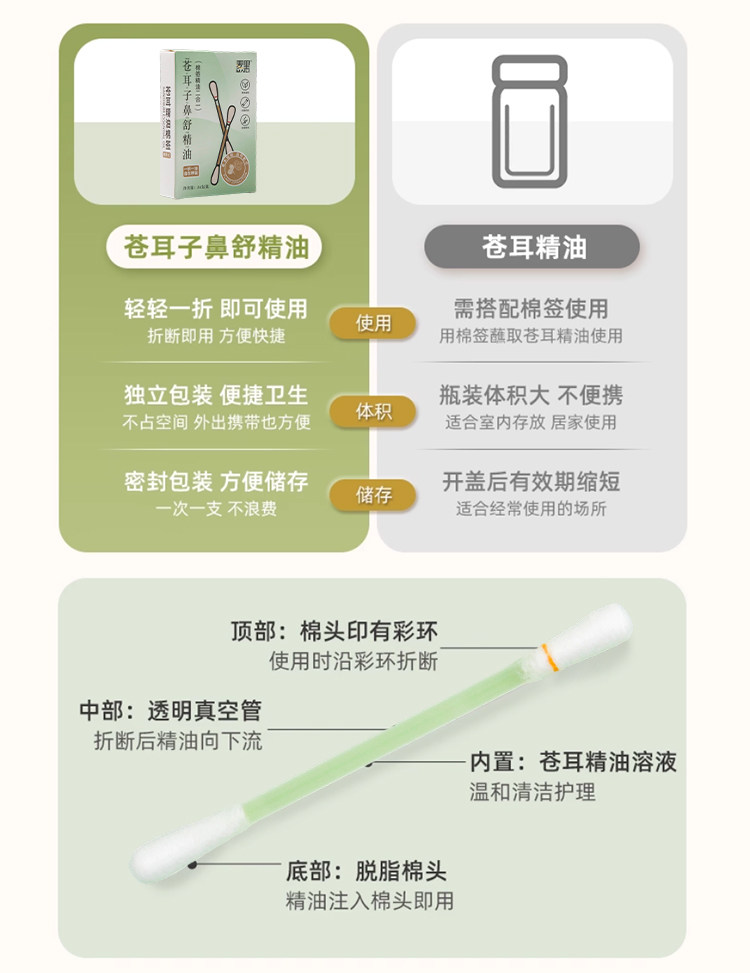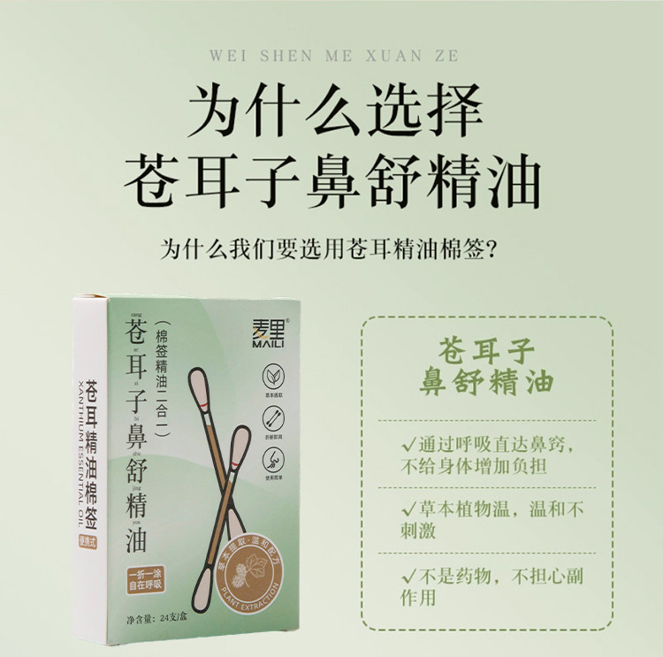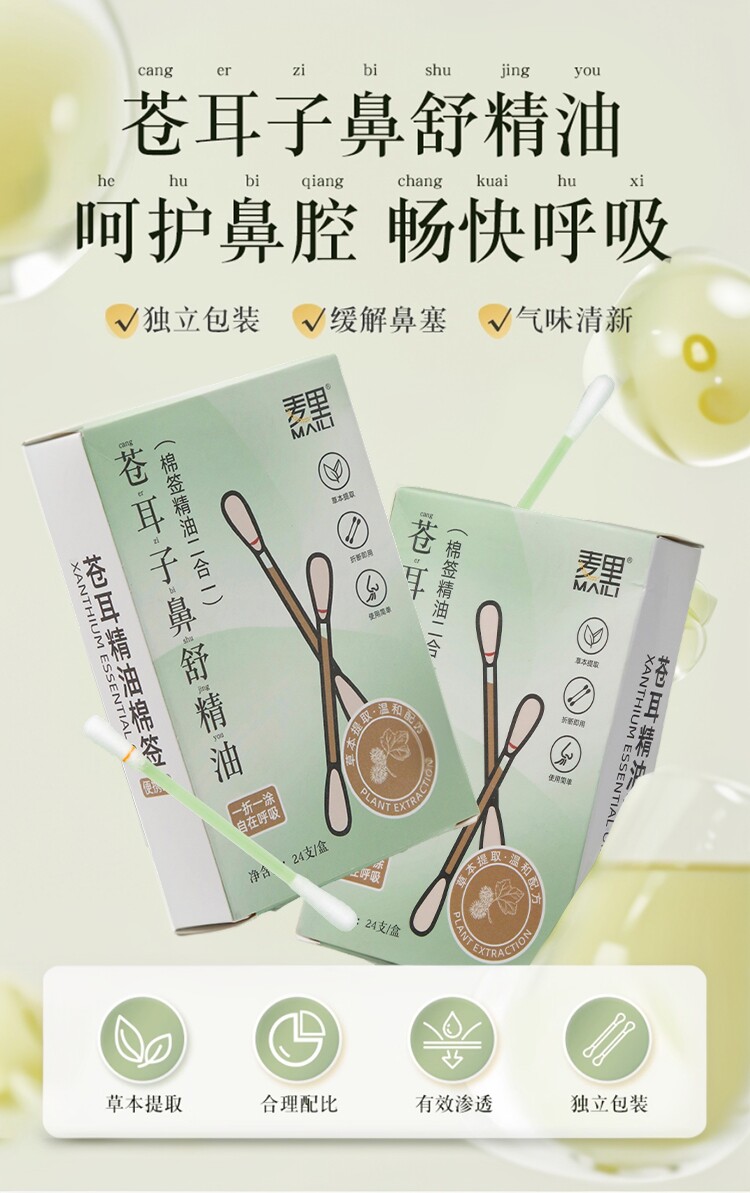 苍耳子精油棉棒鼻油鼻通精油棉签独立包装便携装儿童鼻腔舒缓棉签