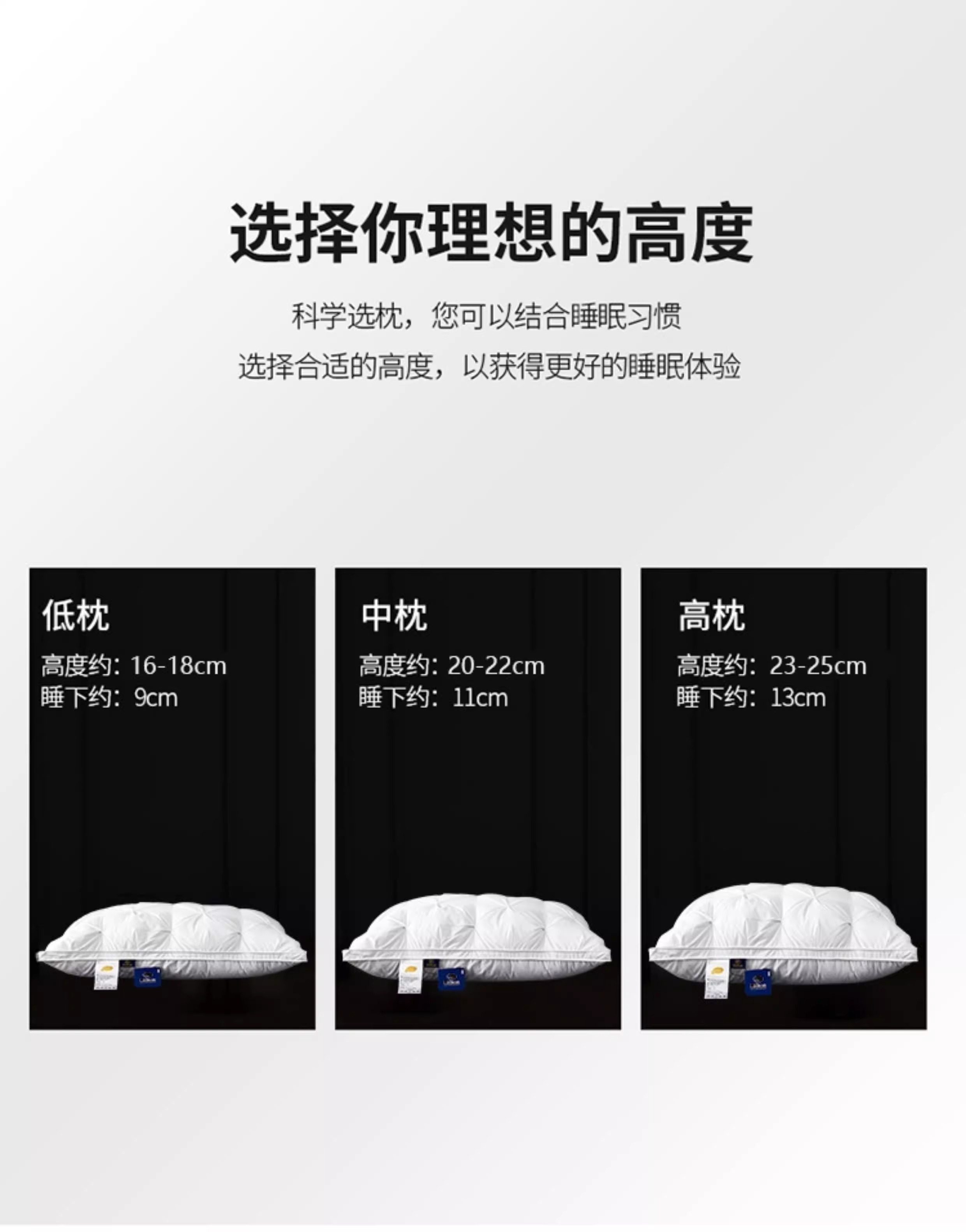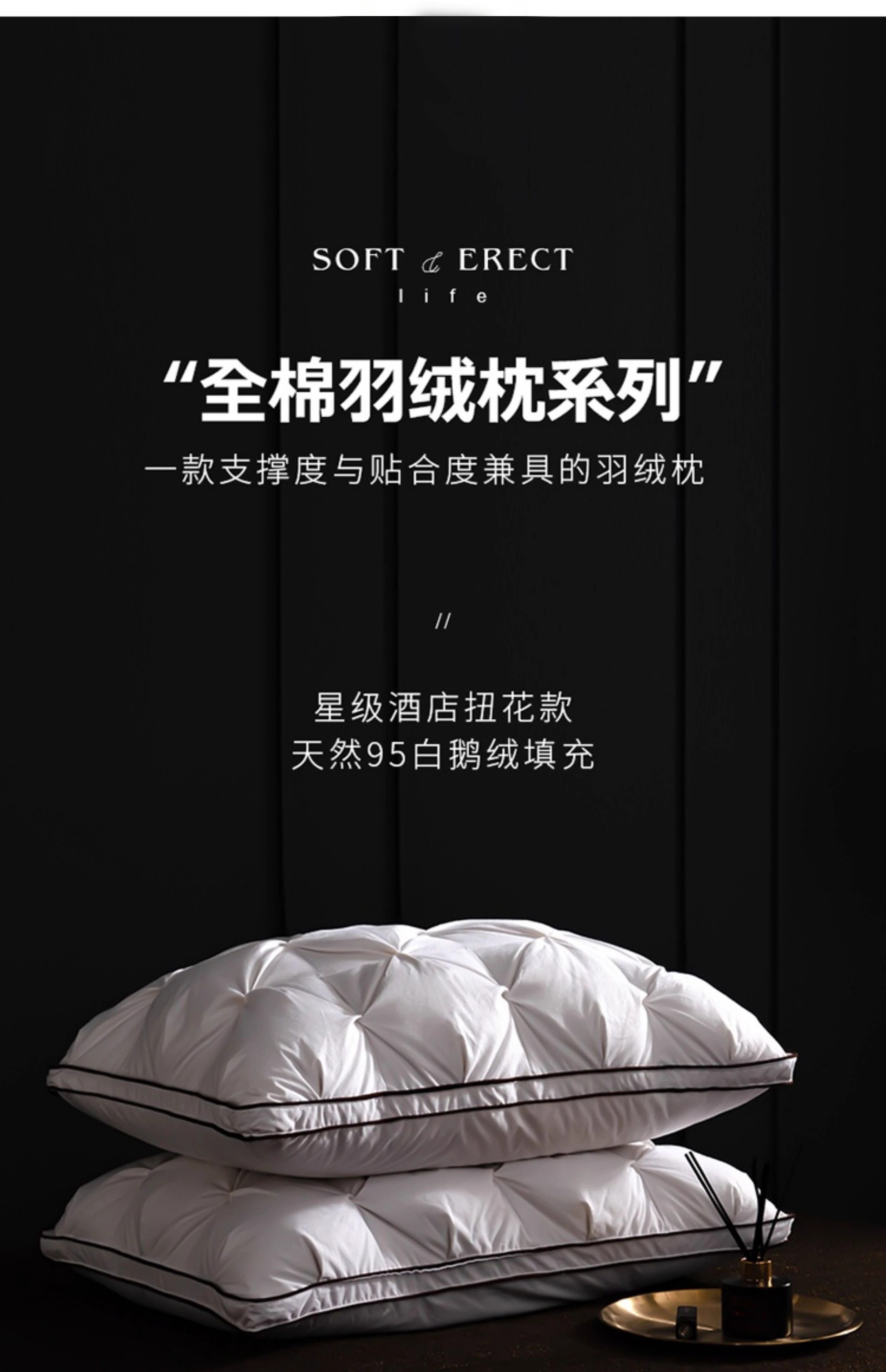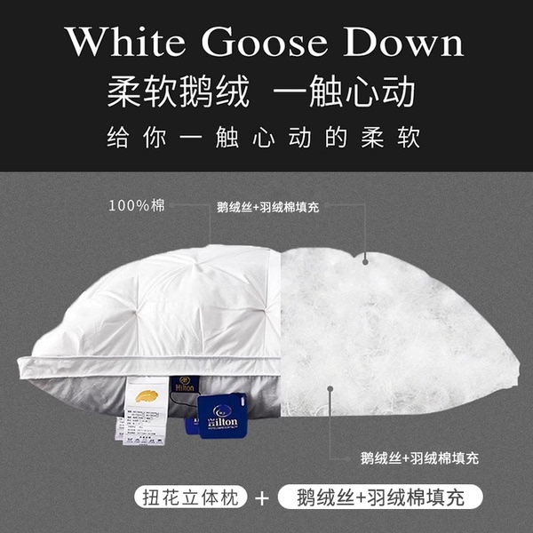 希尔顿五星级酒店羽绒枕头鹅绒枕学生单人护颈椎助睡眠家用单只装